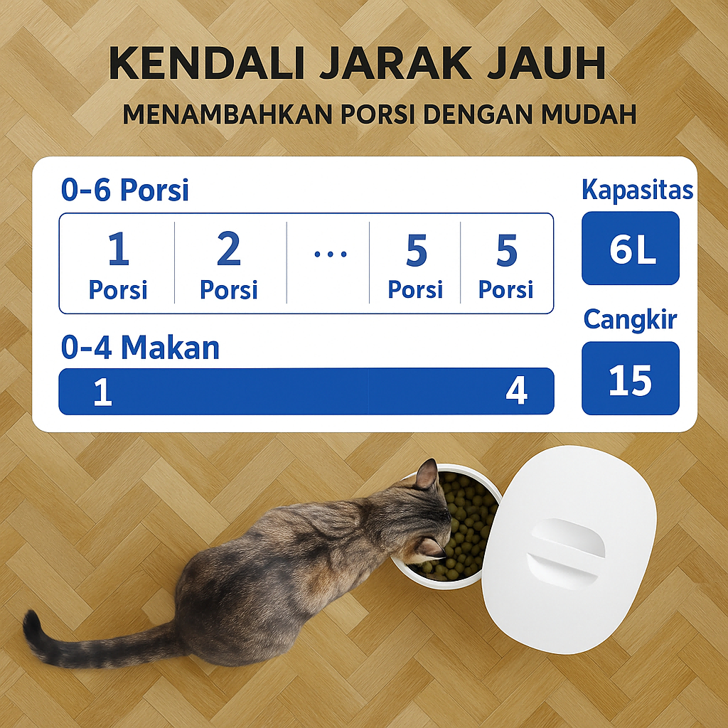 Smart Automatic Pet Feeder APP Connect Kontrol Jarak Jauh Smart Pet Feeder 6 liter kerrg dispenser