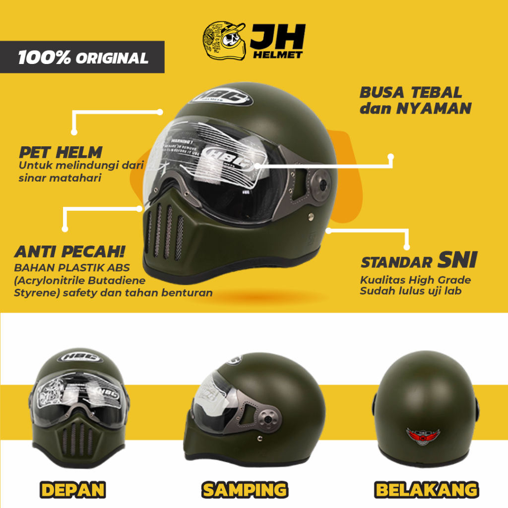 Helm Cakil HBC Pilot Polos Green Army Doff | Original 100% | HBC Cakil | Helm Retro | Helm Full Face | Helm HBC | Cakil
