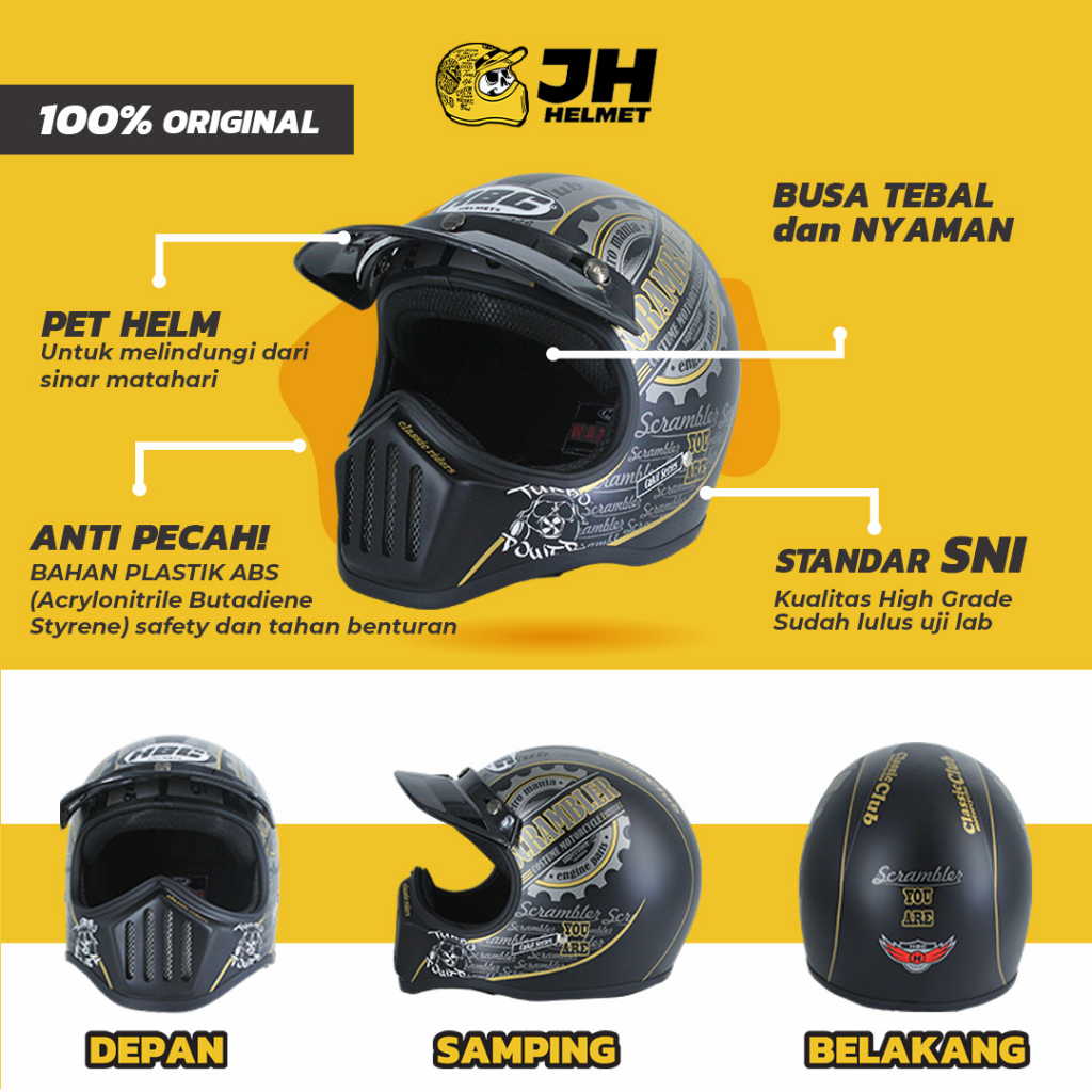 Helm Cakil HBC Srambler + FREE GOOGLE | Helm Retro | Full Face | Jual Helm