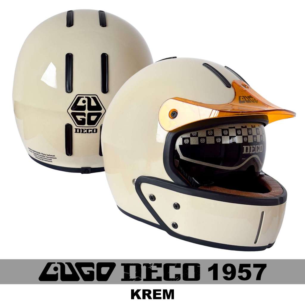 Helm Dewasa Klasik Cakil LUGO Deco 1957 Polos Standar SNI, Visor Unik, Interior Nyaman