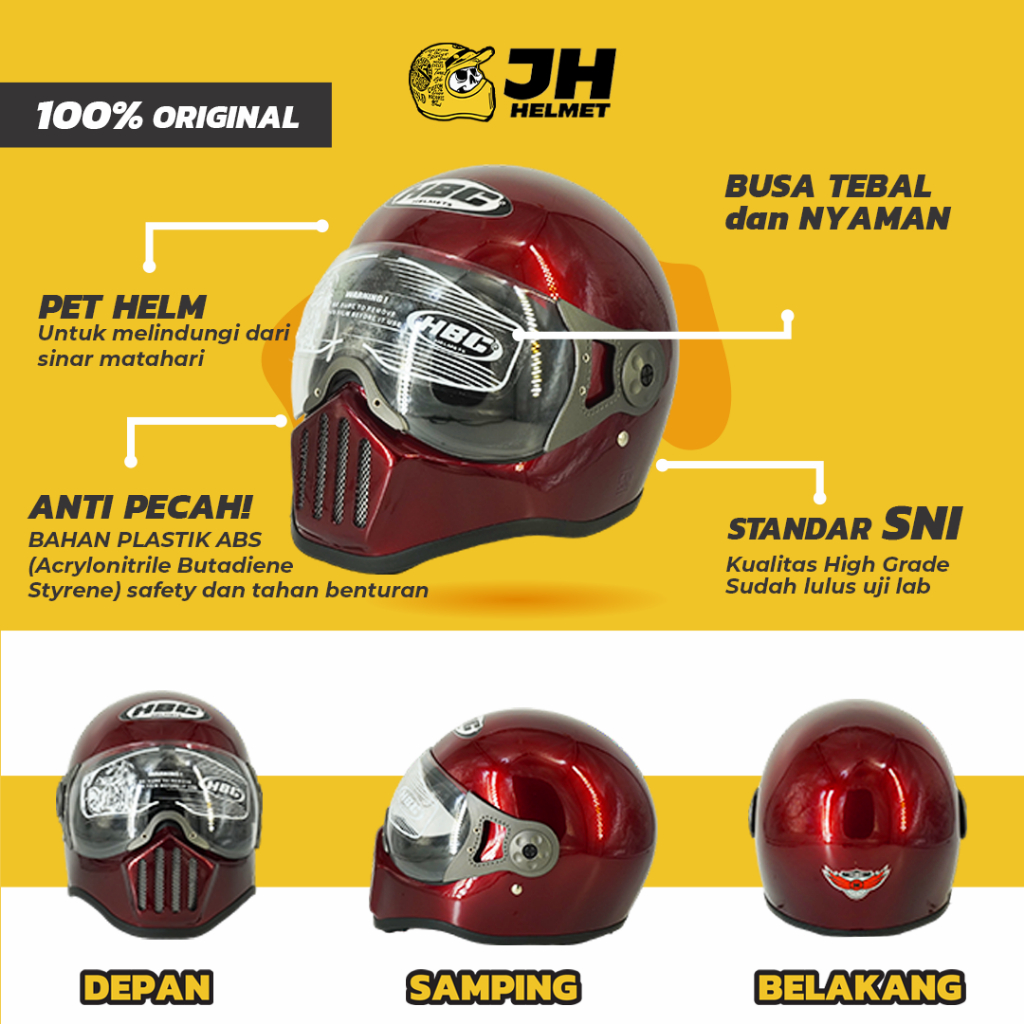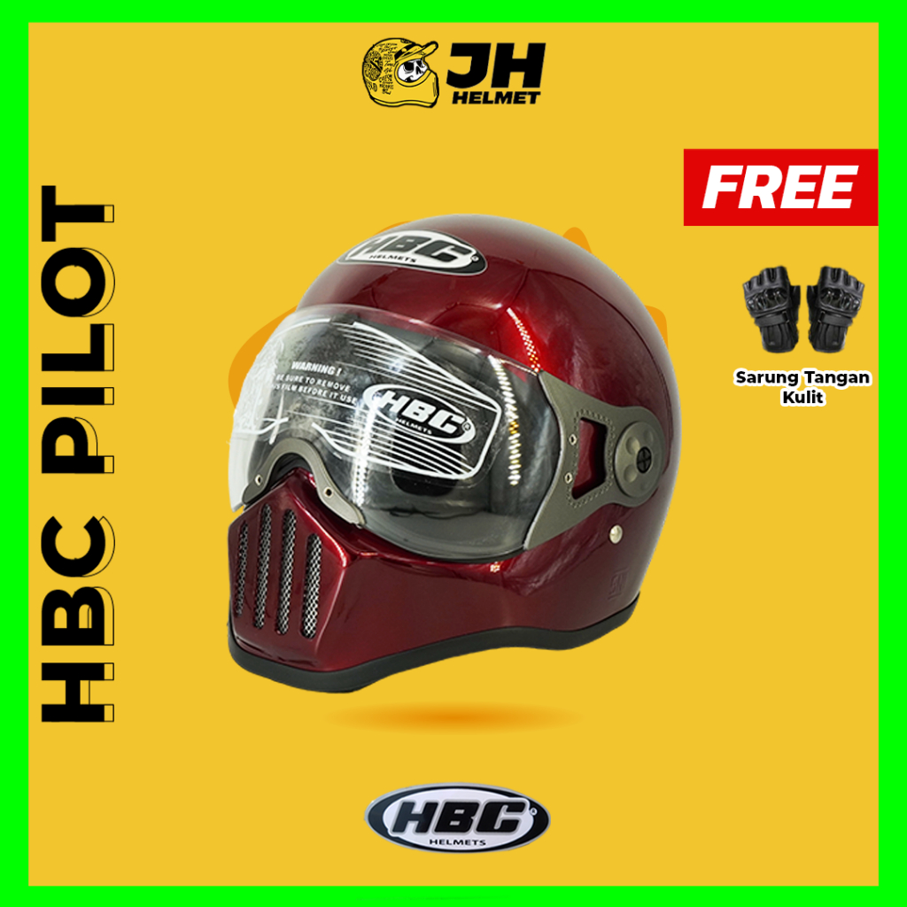 Helm Cakil HBC Pilot Polos Maroon Glossy | Original 100% | HBC Cakil | Helm Retro | Helm Full Face | Helm HBC | Cakil He