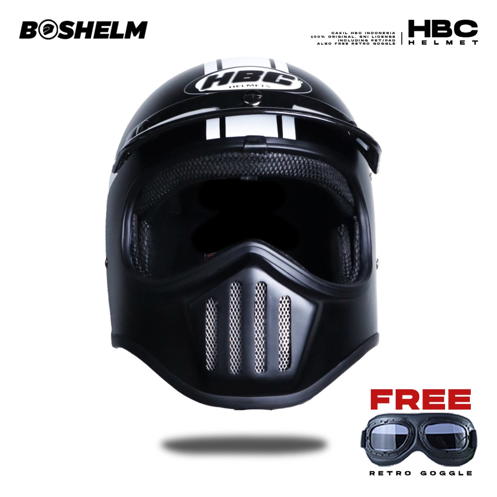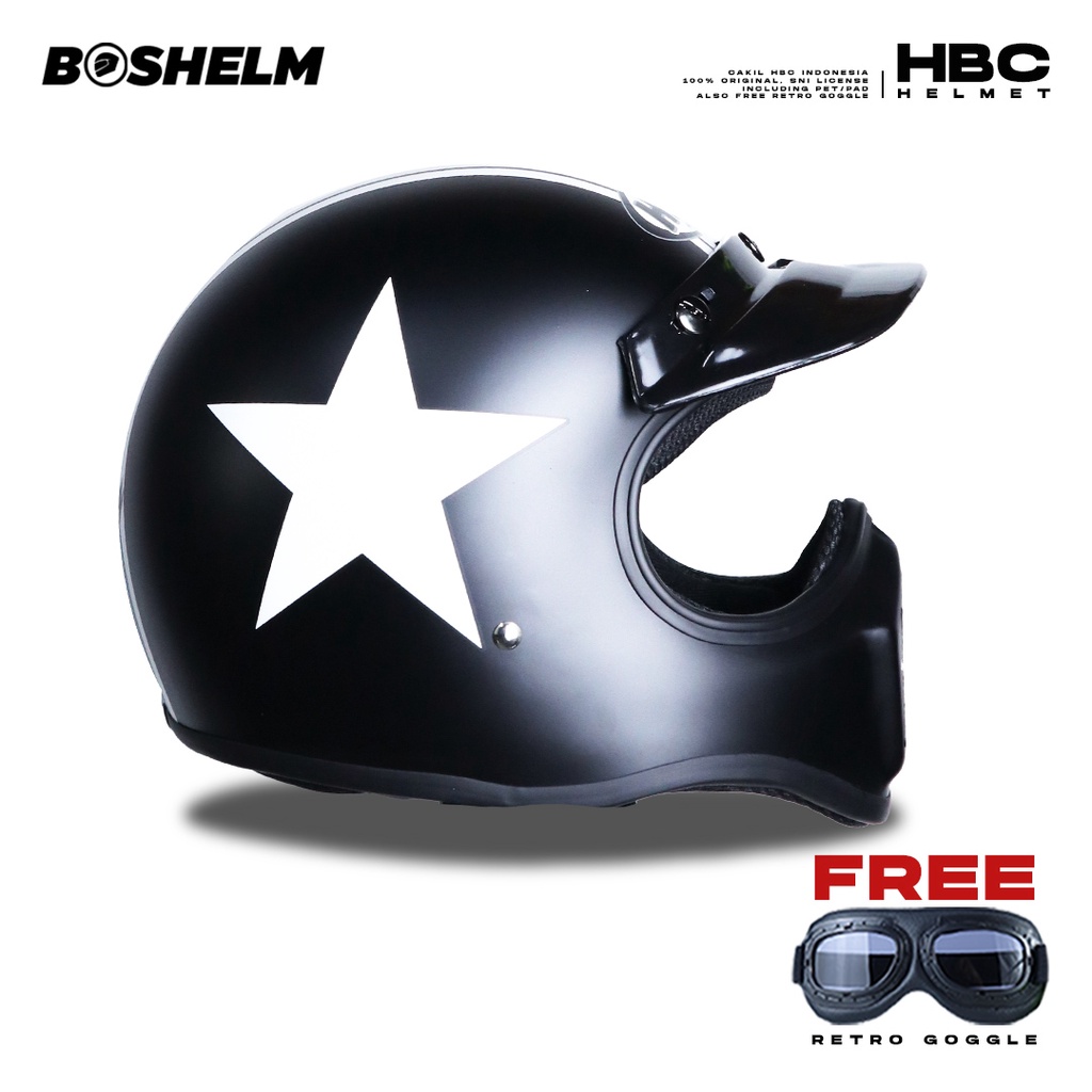 BOSHELM Helm Cakil HBC WHITE STAR BLACK Helm Retro Full Face SNI