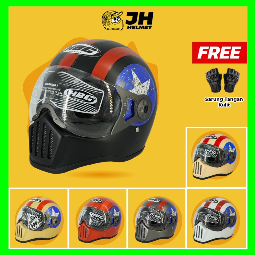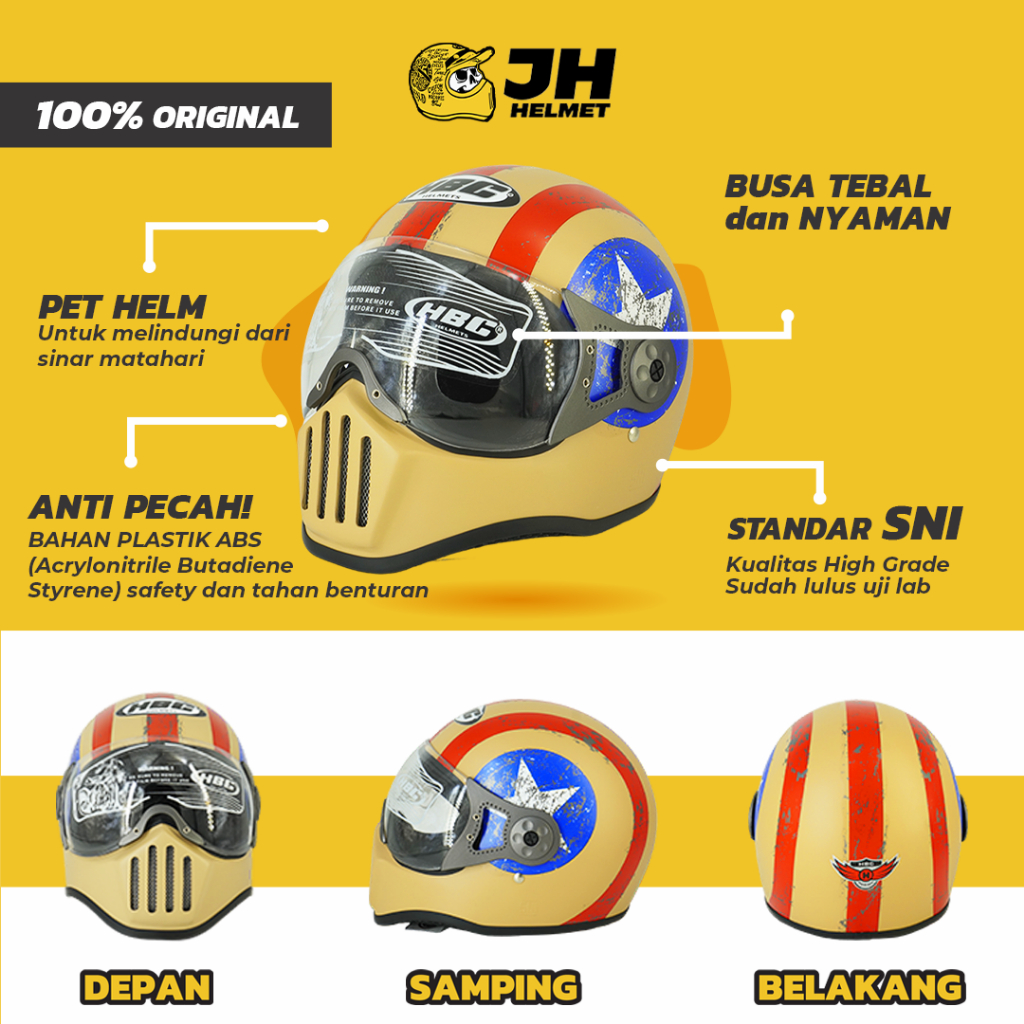 Helm Cakil HBC Pilot Visor Polos Captain America + FREE BONUS | Helm Retro | Full Face | Jual Helm