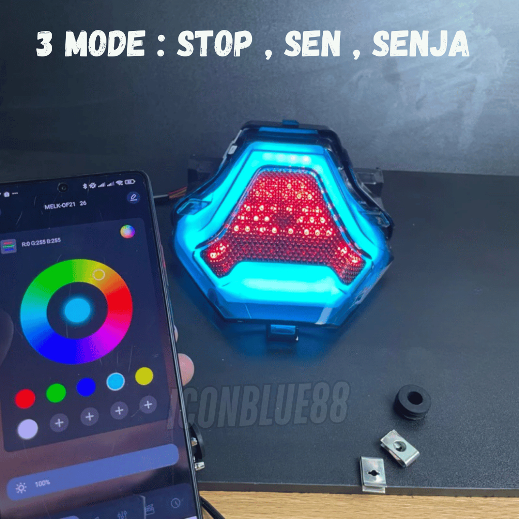 iconblue88 Stoplamp MX King RGB LED Running 3 In 1 Plus Sen Lampu Stop MT25 R25 Y15ZR Exciter150 Aplikasi