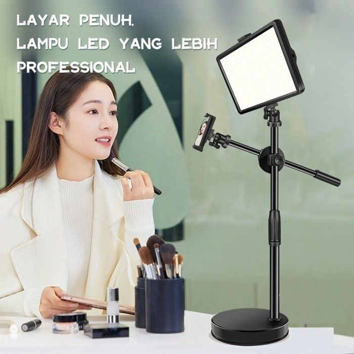 ring light konten SMARTCOM Overhead Phone Stand with Led Lampu Stand Holder Phone Holder Bracket 360° Lampu Fotografi