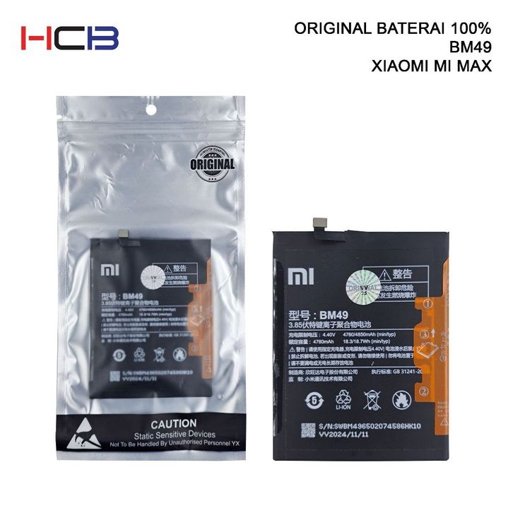 ORIGINAL HCB | Baterai XIAOMI BM-49 XIAOMI MI MAX ORIGINAL 100 Battery Batteray Batre Batrai Btr Batt HP baterai xiaomi