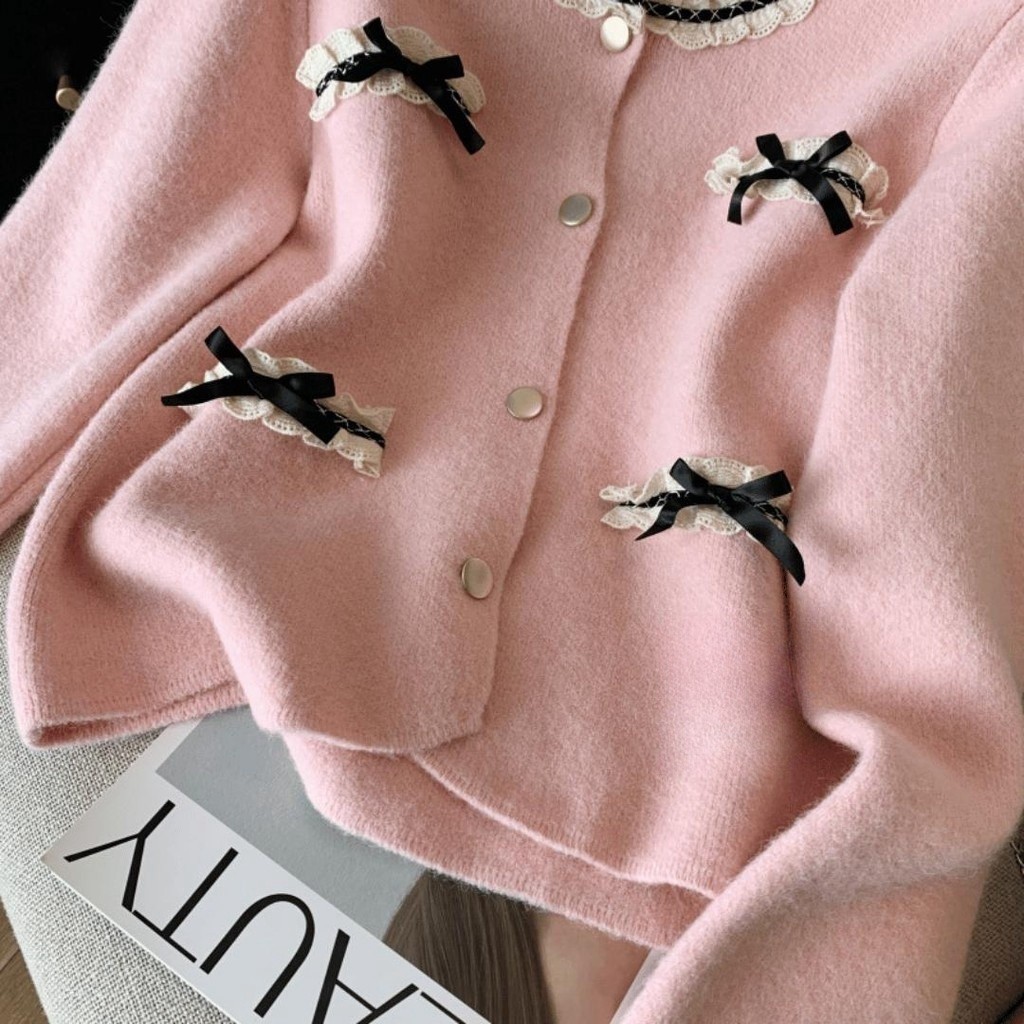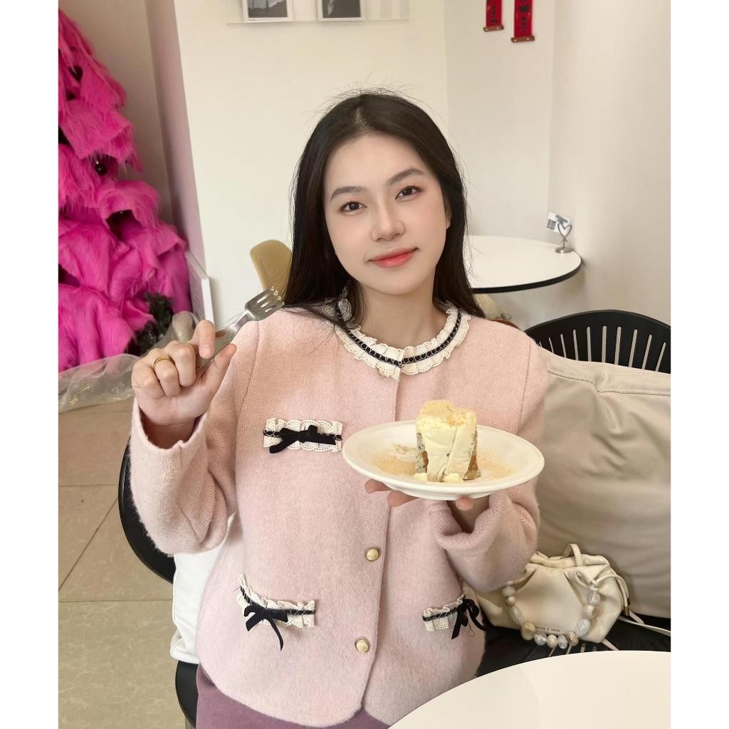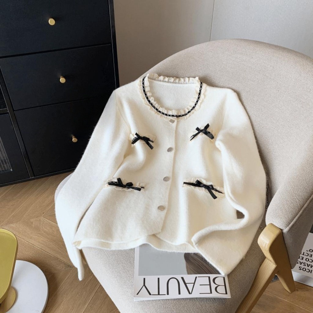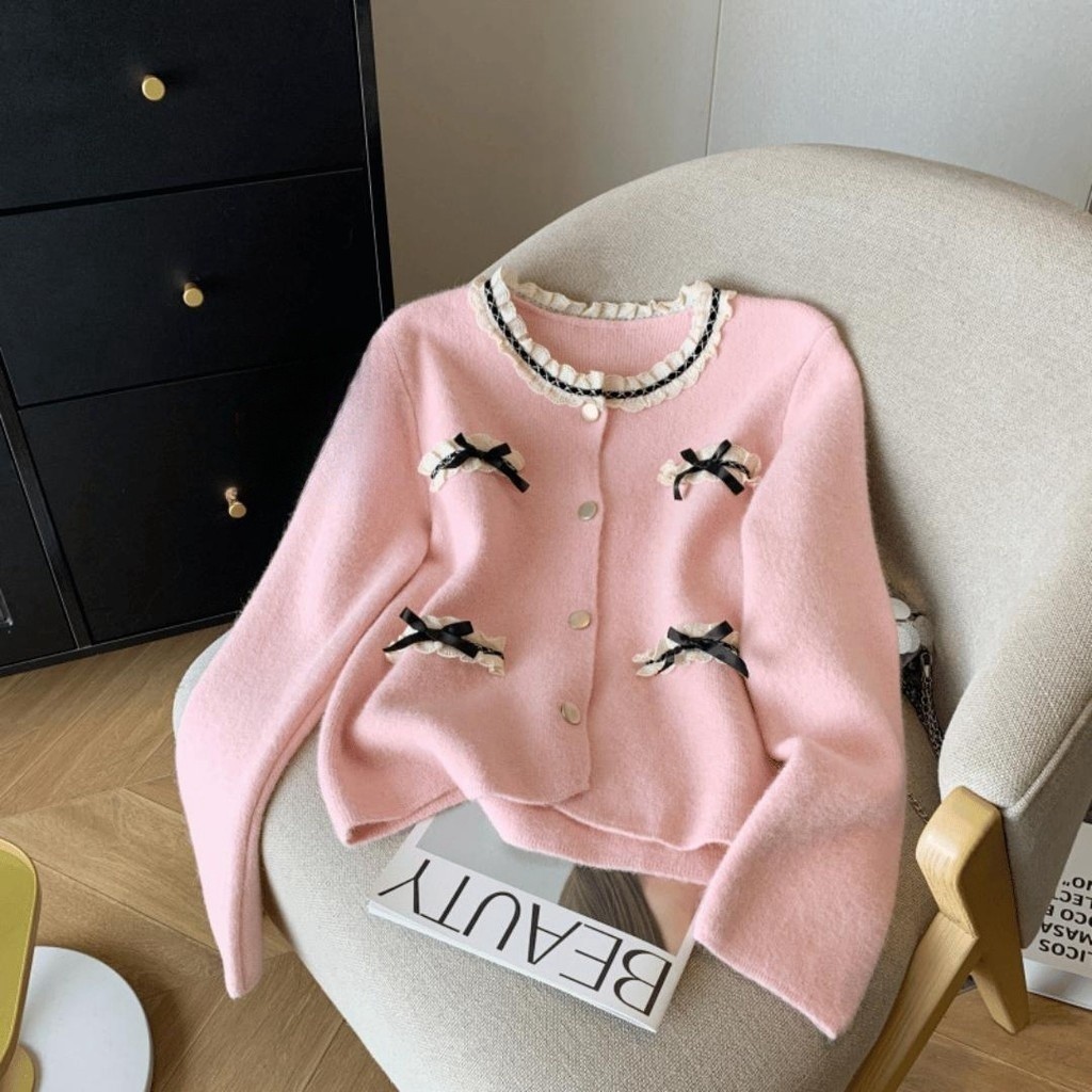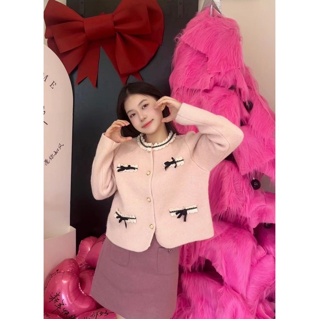 SHENNING Blazer Cardigan Elegant Classy Pita Imut Pastel BKK Halus Knitwear Santai Wol Outer