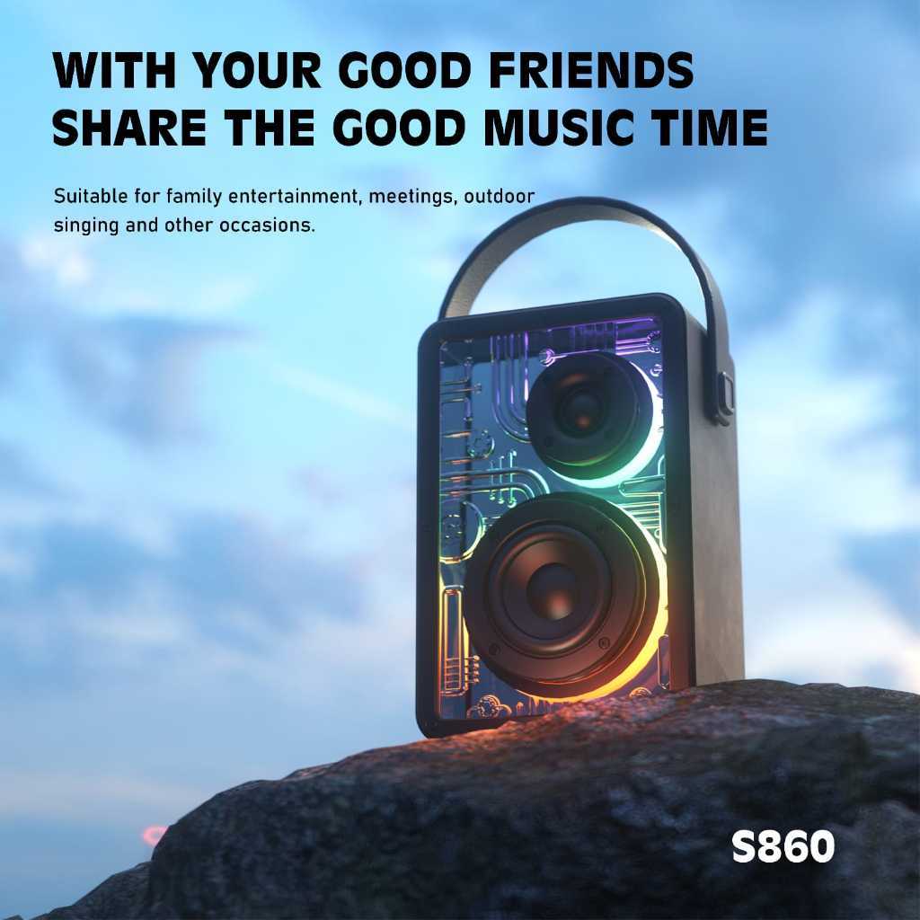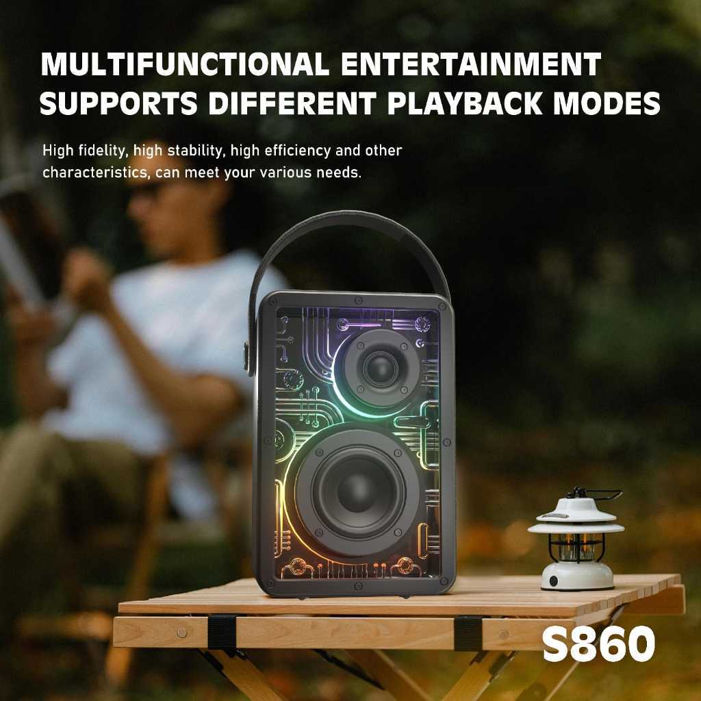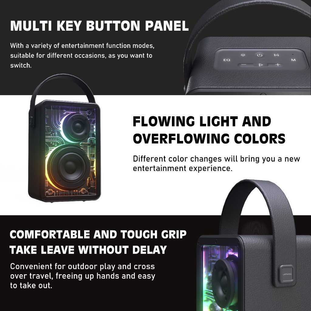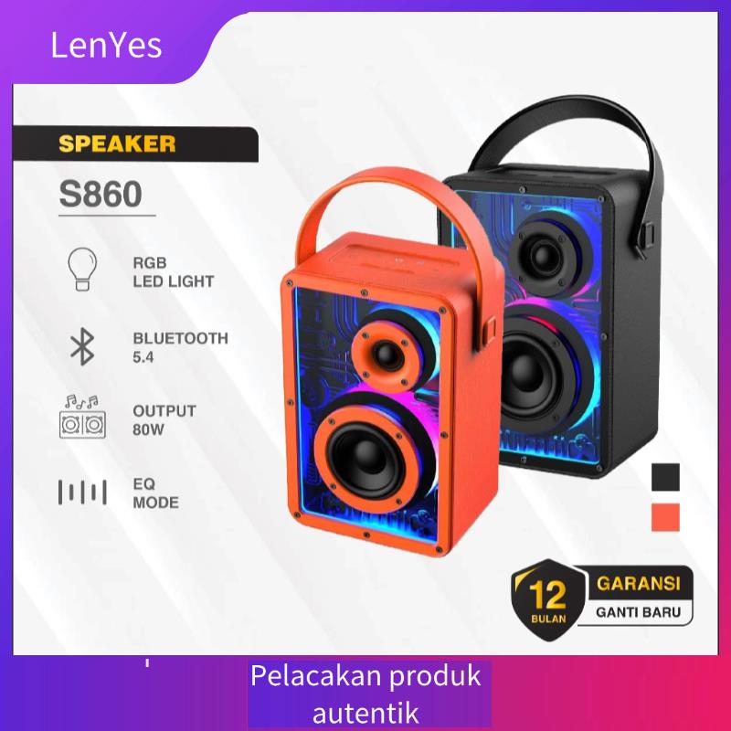 LENYES S860 Speaker Bluetooth Wireless 80W Transparan Cyberpunk RGB Colorful LED Light Portable TWS