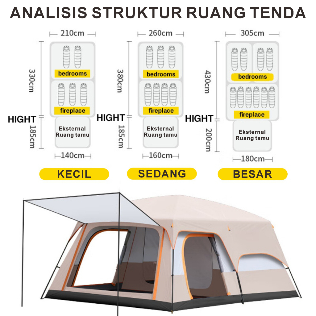 WTHB Outdoor Tenda camping outdoor 8-12 orang Tenda waterproof and windproof Tenda Pertemuan Keluarga Tenda Besar outdoo