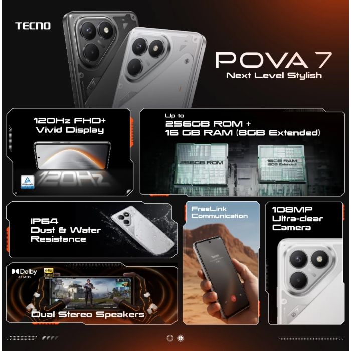 TECNO POVA 7 NFC 8/128GB | 8/256GB Up to 16GB Extended RAM - Garansi Resmi