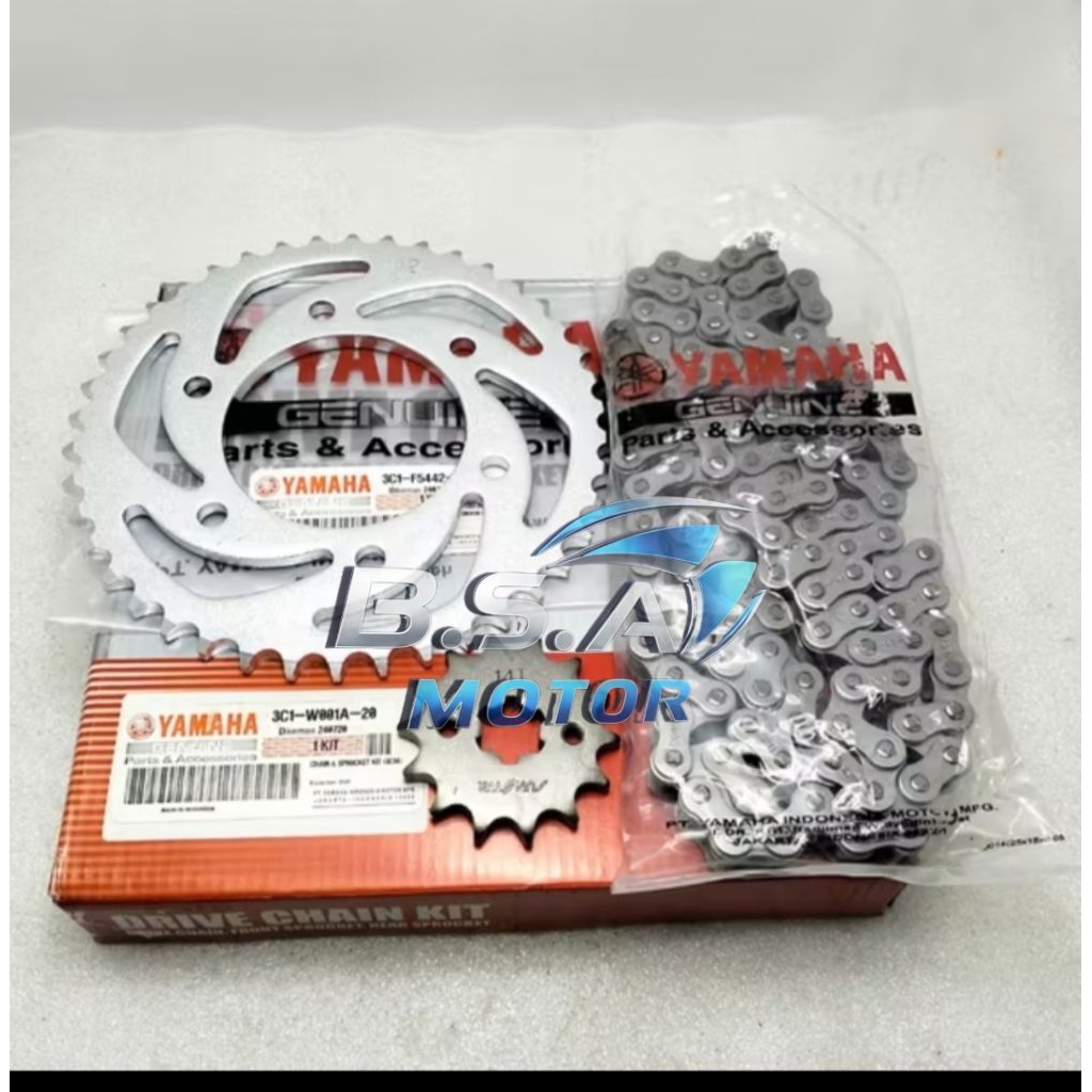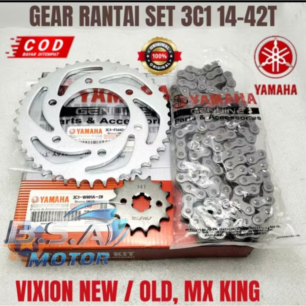 Gear Set 3c1 Ori Yamaha Vixion New, Vixion Old, Mx King Gear Depan Belakang Plus Rantai 3c1 14 +42t Original Termurah