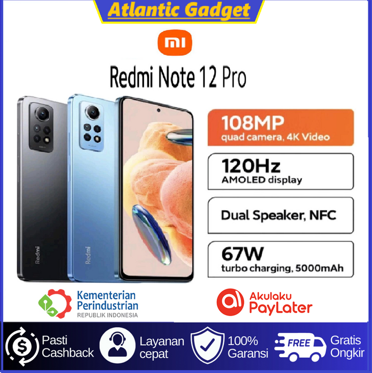 Hp Xiaomi Redmi Note 12 Pro RAM 8/256GB | Snapdragon® 732G | 108MP Kamera | Layar 6.67" AMOLED | Baterai 5000mAh 67W