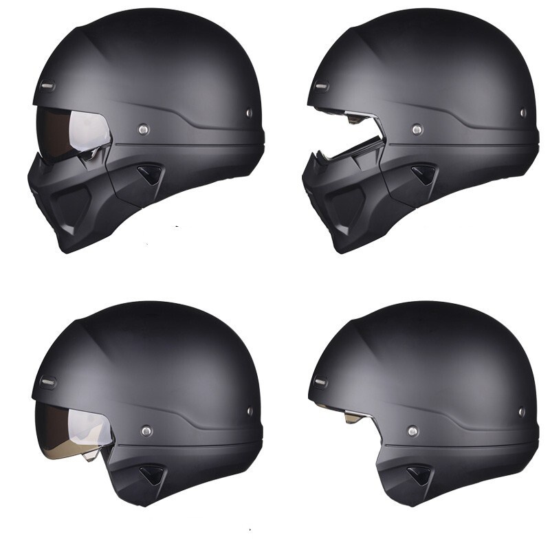 Helm Pria [New Trend] Samurai Black Scorpion Male Harley Combination Half Four Seasons Electric Vehicle Helmetdilgashop