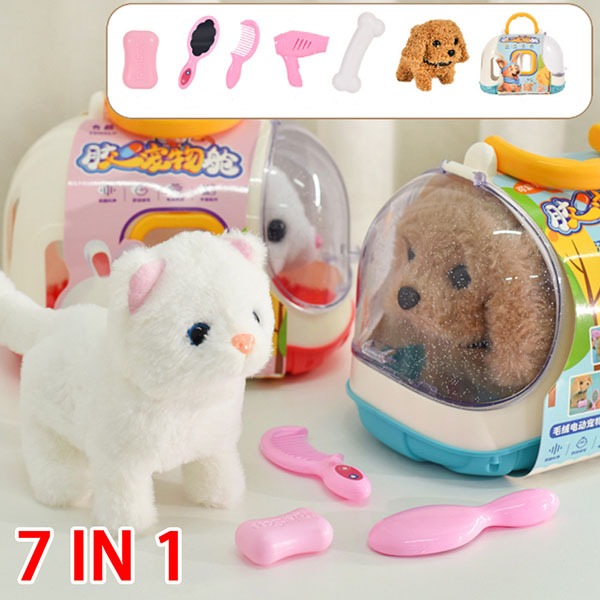 Pet House Mainan Boneka Anjing Kucing Bergerak Hewan Peliharaan Simulasi Berjalan & Berbunyi