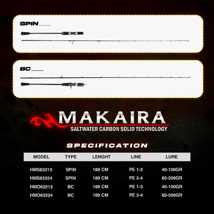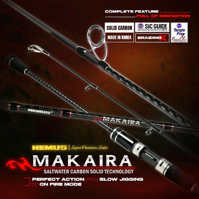 Joran Light Jigging Solid Carbon Hemus Makaira 6'3" Sambung 2 (SPINNING / Overhead) Full Fuji Slow Jig - PE 1-3/40-100g