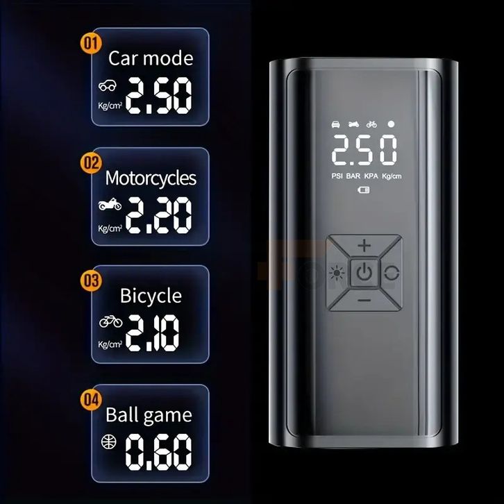 Pompa Ban LED Tampilan Digital Sepeda Motor Yang Dapat Diisi Ulang Kompresor Udara Nirkabel Kecil Inflator Ban Portabel
