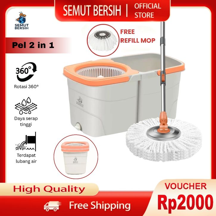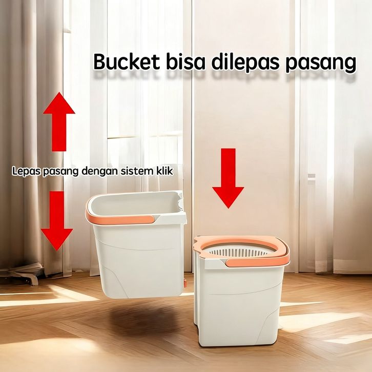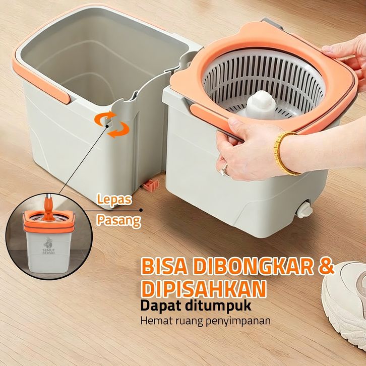Pel Lantai 2 in 1 Spin Mop Ember Terpisah Pel Lantai Kain Mikrofiber SEMUT BERSIH