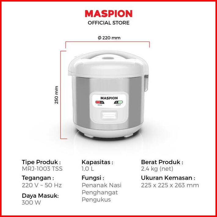 Maspion Rice Cooker Magic Com 1 Liter Mrj-1003 Tss