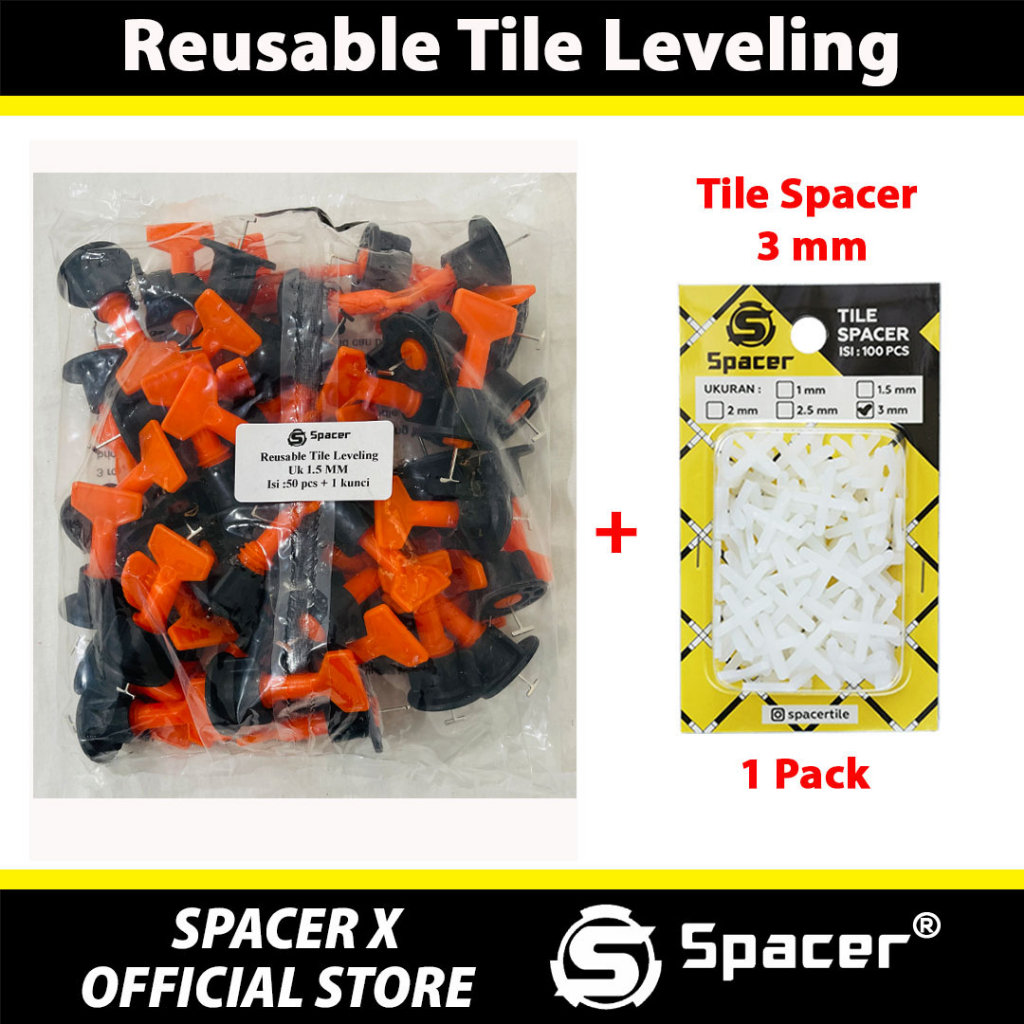BONUS Tile Spacer 100 pcs Reusable Tile Leveling 1 mm Alat Perata Pasang Keramik Granit Model Putar Dapat di pakai Berul