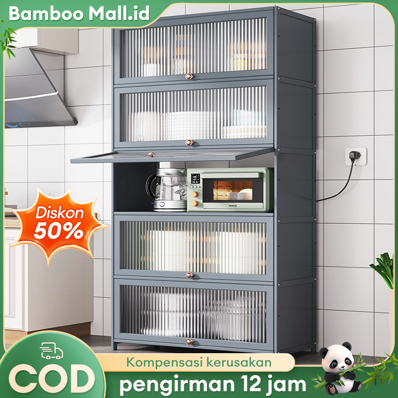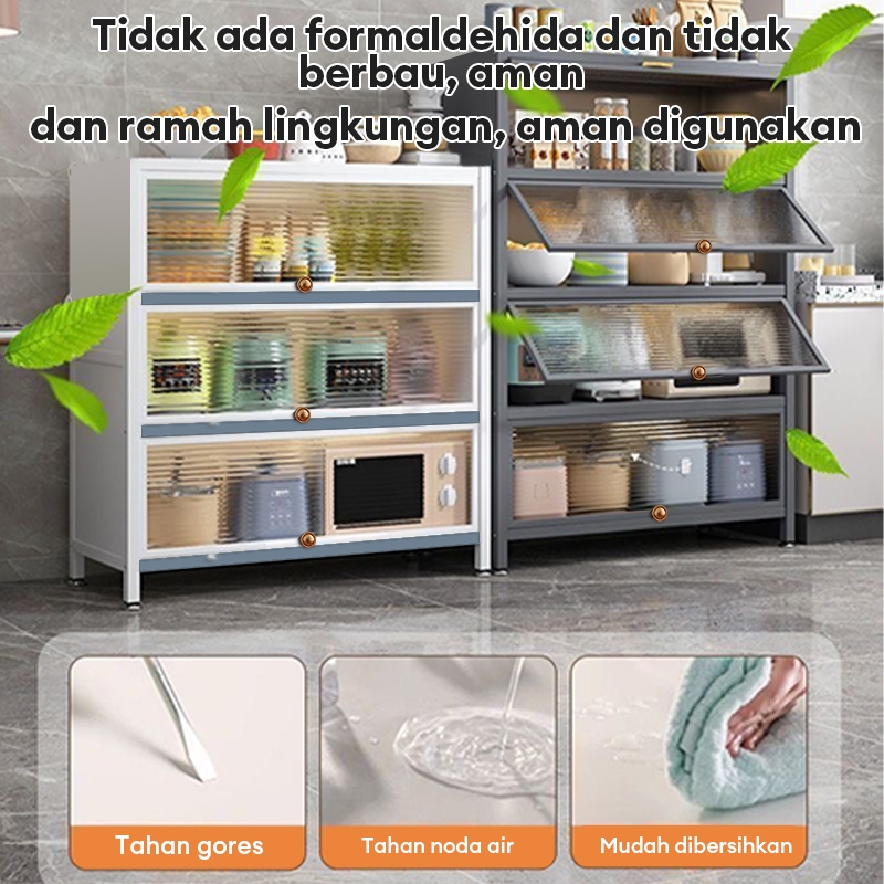 RAK DAPUR DENGAN PINTU TERTUTUP KAYU LEMARI RAK PIRING SUSUN RAK LEMARI OVEN MICROWAVE MINIMALIS