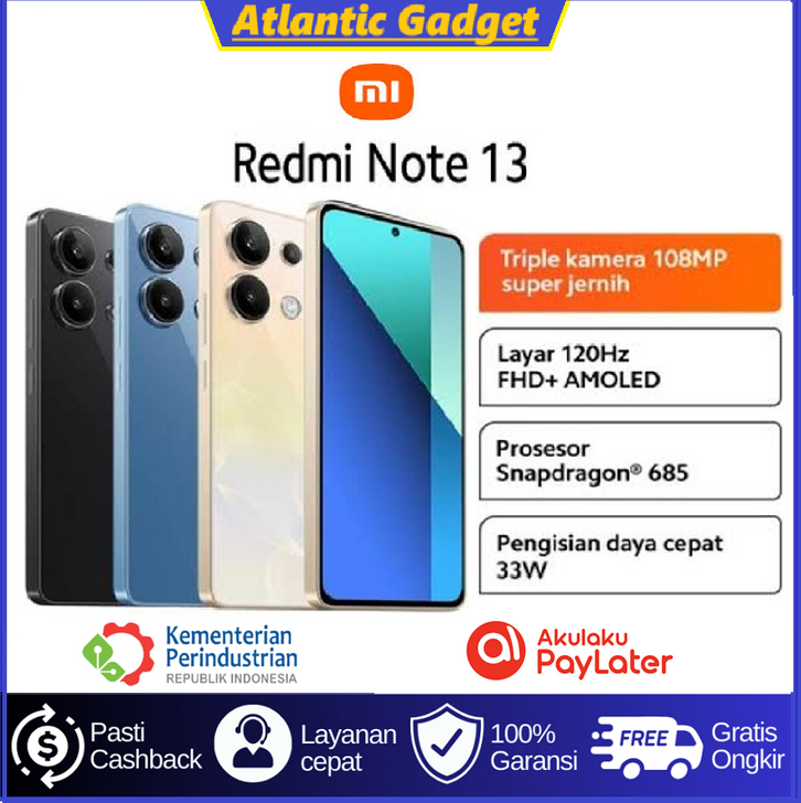 Hp Xiaomi Redmi Note 13 RAM 8/256GB | Snapdragon® 680 | 108MP Kamera | Layar 6.67" AMOLED | Baterai 5000mAh 33W | NFC