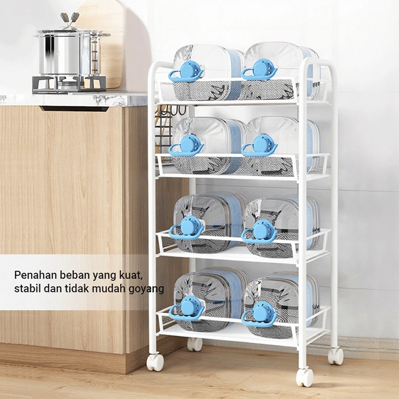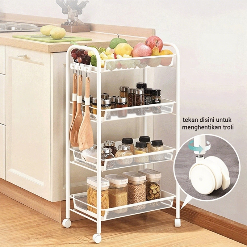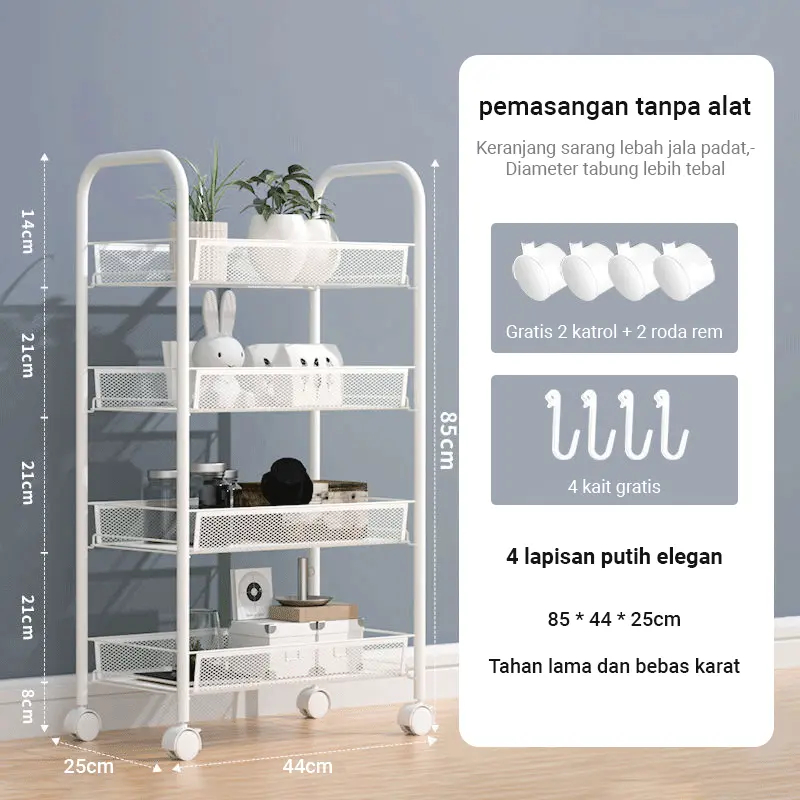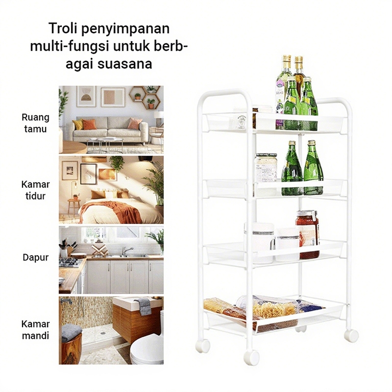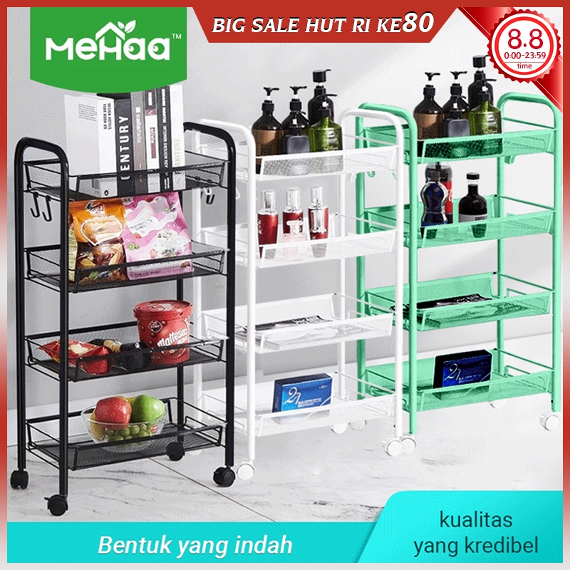 MEHAA RAK SUSUN SERBAGUNA RAK TROLI BESI 4 SUSUN BERODA MULTIFUNGSI UNTUK DAPURGUDANG & KANTOR