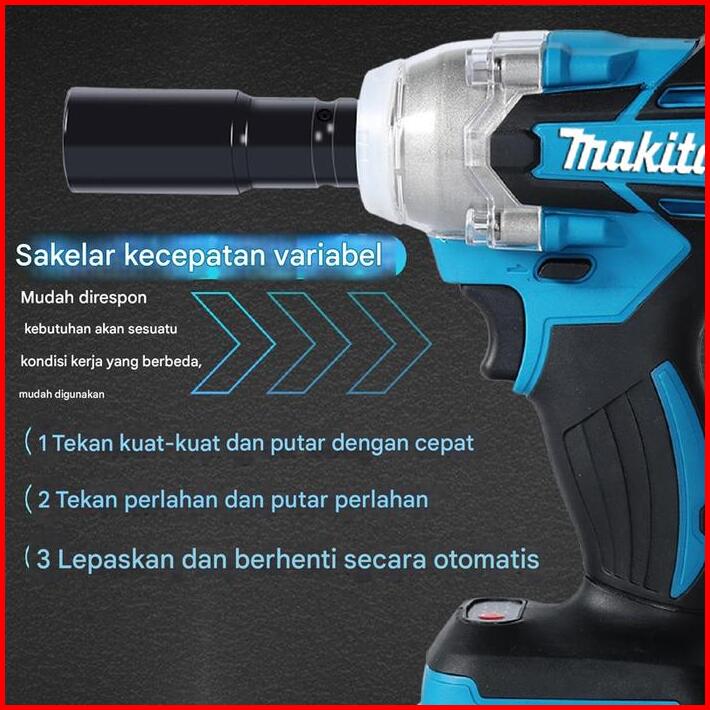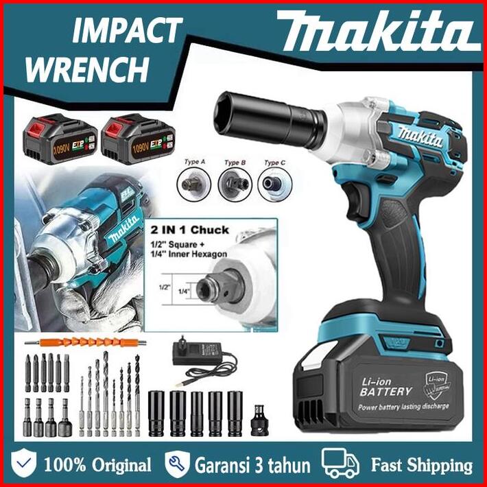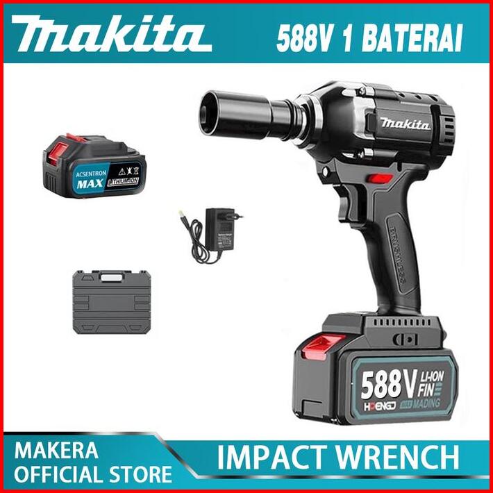Maklta Mesin Bor Impact Wrench Cordless Pembuka Baut Baterai 1090 588v 2baterai