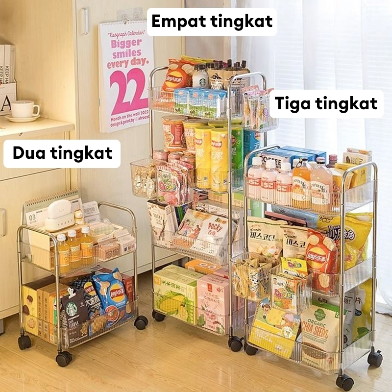 RAK TROLI SUSUN STAINLESS STEEL RAK KAMAR MANDI DAPUR RAK TROLI SUSUN KOSMETIK SERBAGUNA RAK AKRILIK SUSUN