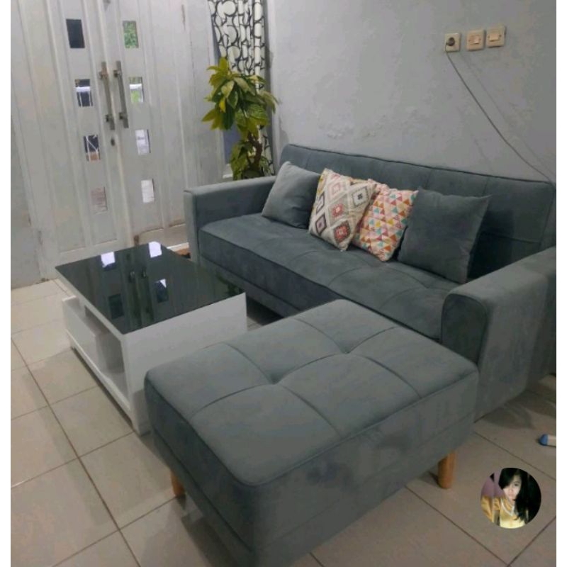 BRENDA SOFA/SOFA BED 3 SEATER RUANG TAMU MINIMALIS SET SOFA+MEJA+STOOL