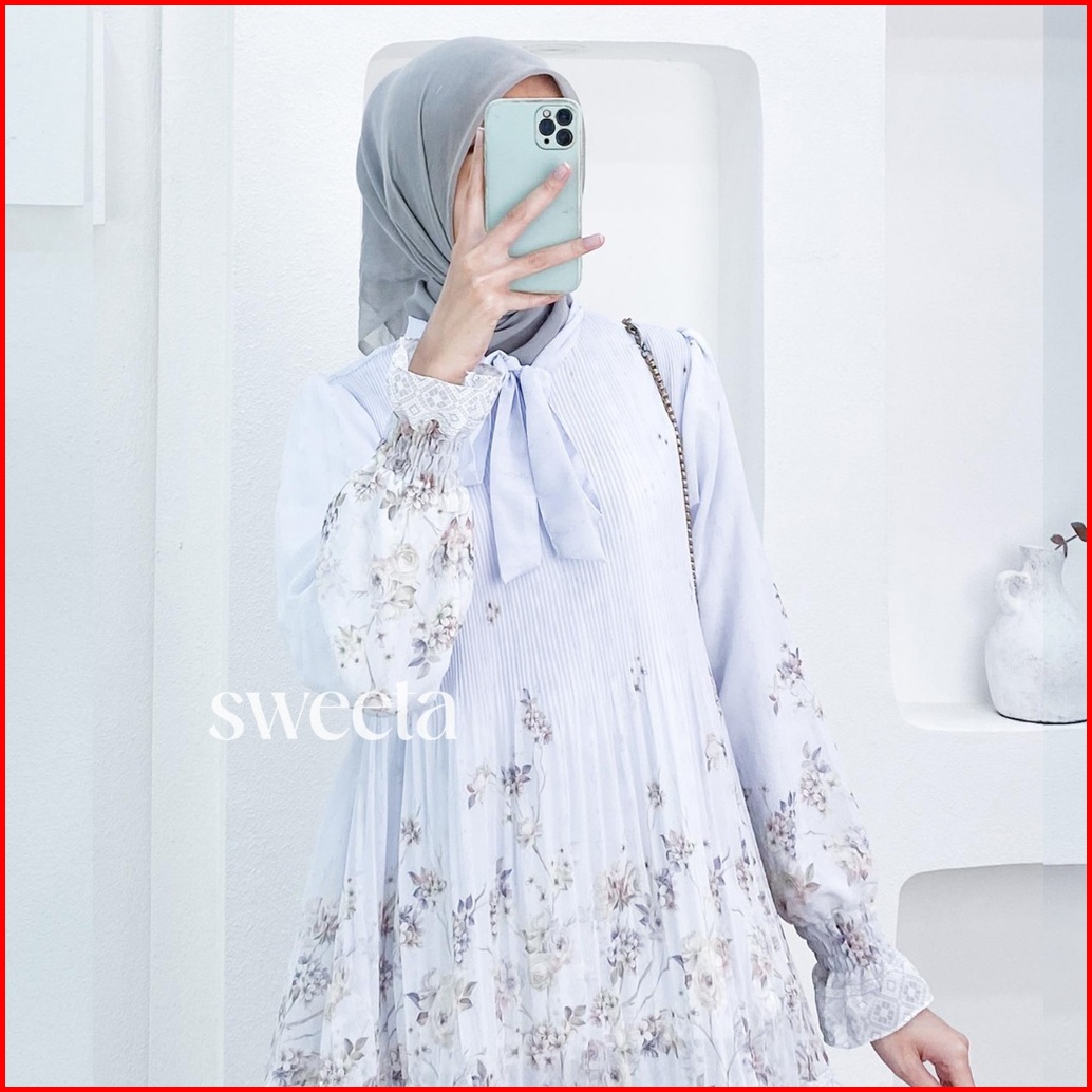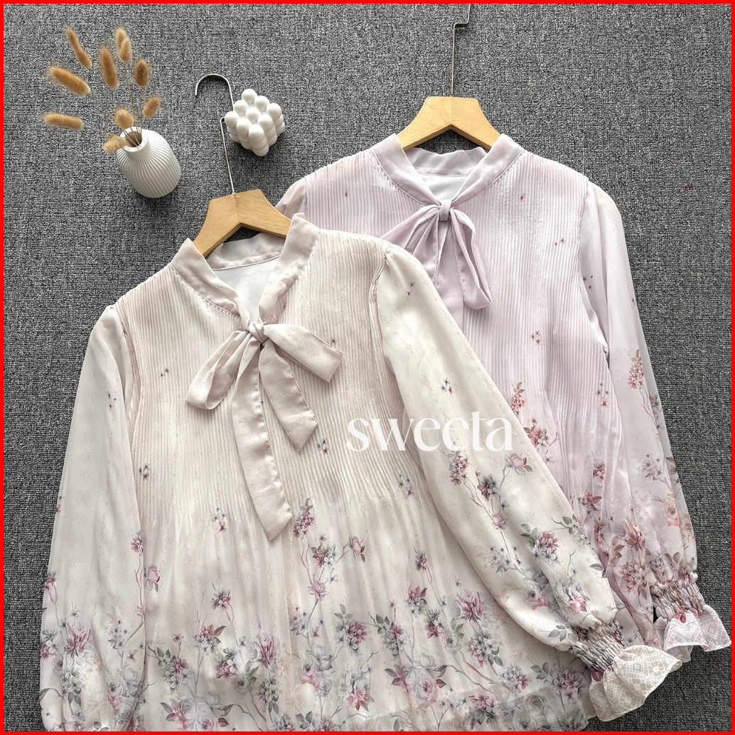 Sweeta Blouse Plisket Leher Pita Floral Ceruty Full Furing Ld 110cm Korea Style Oversize