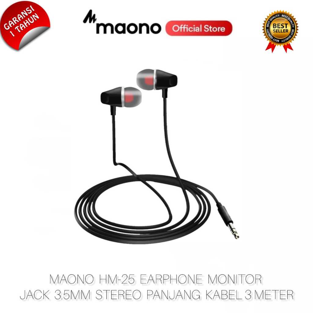 NEW ORIGINAL MAONO HM-25 Earphone Jack 3.5mm Earbuds in-Ear Wired Bass Drivensound with 3 Meters Cable HM 25