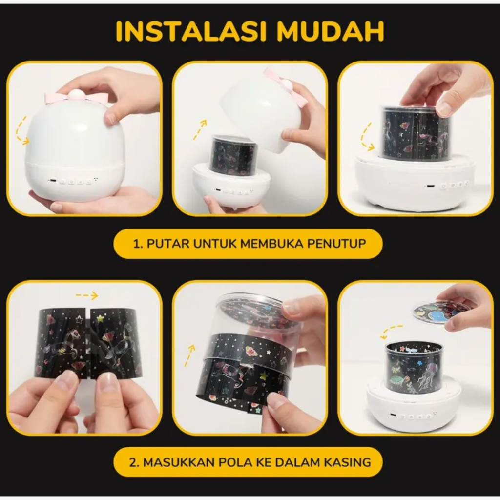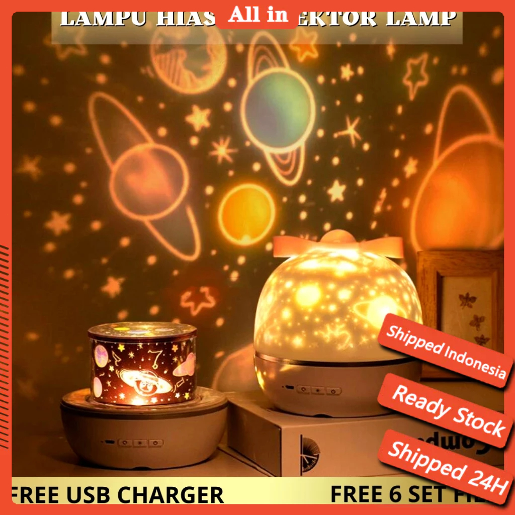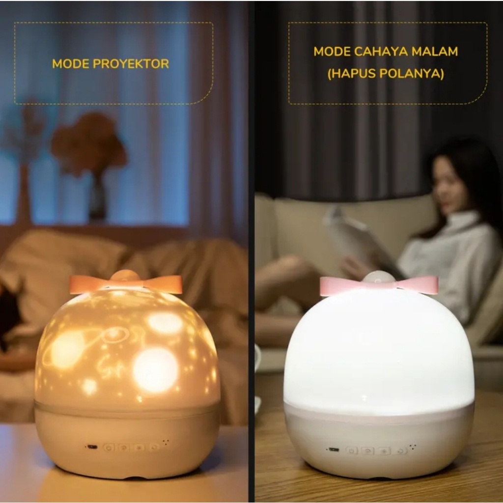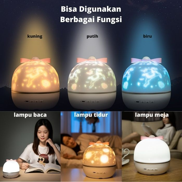 Lampu Tidur Proyektor langit malam berbintang kamar aesthetic tidur lucu Bluetooth Speaker Rotasi Rechargeable Kado Nata
