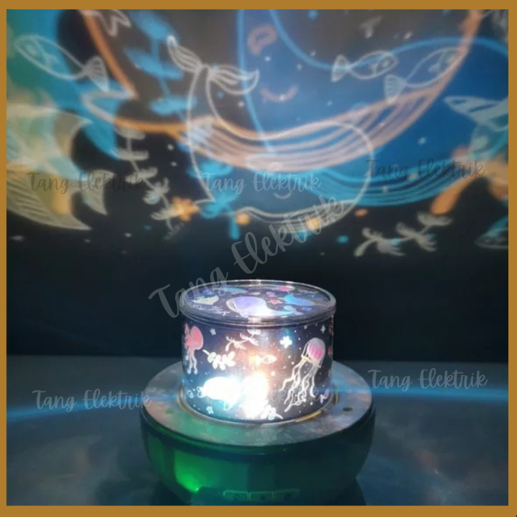 Lampu Tidur Proyektor Langit Bulan Bintang Rotasi Rechargeable