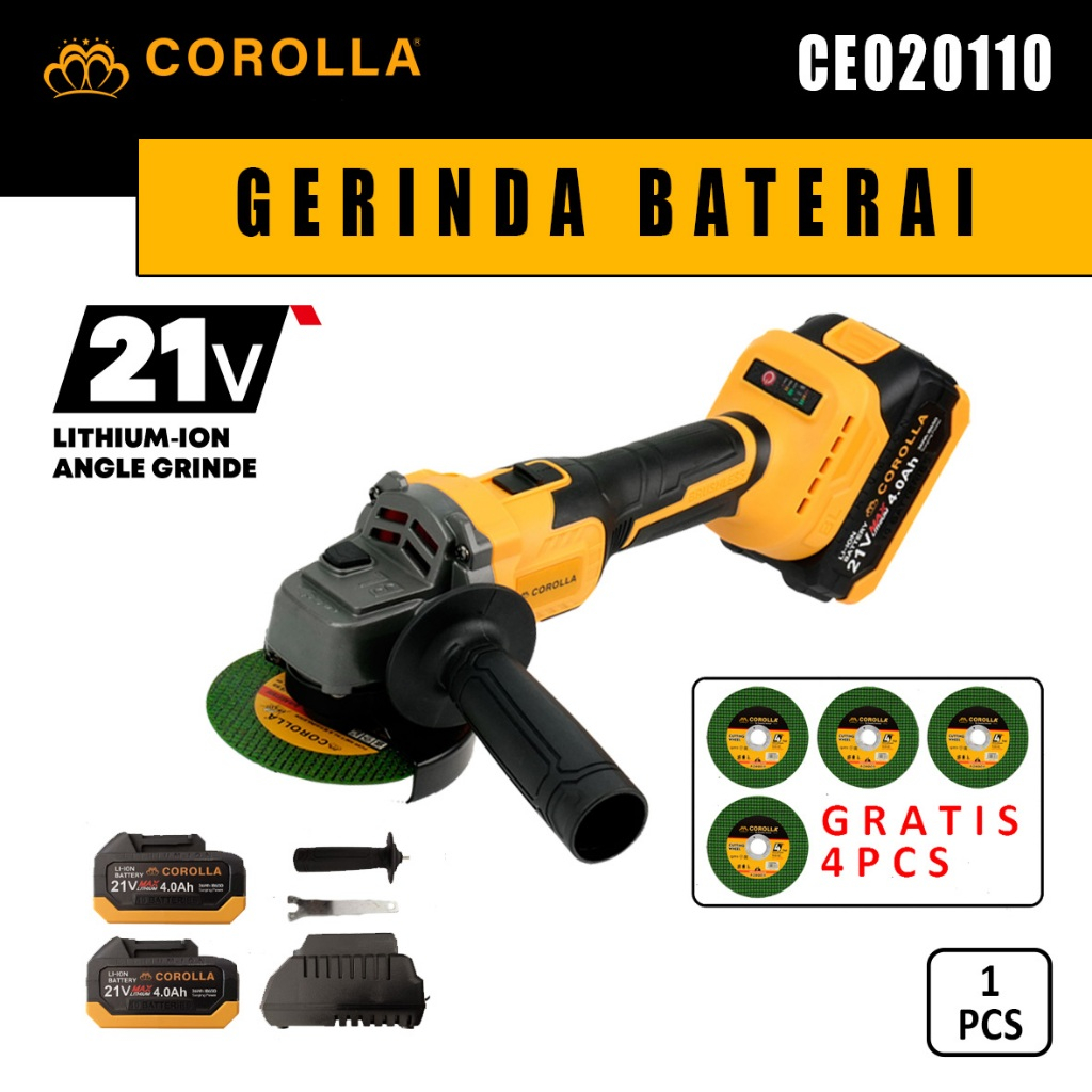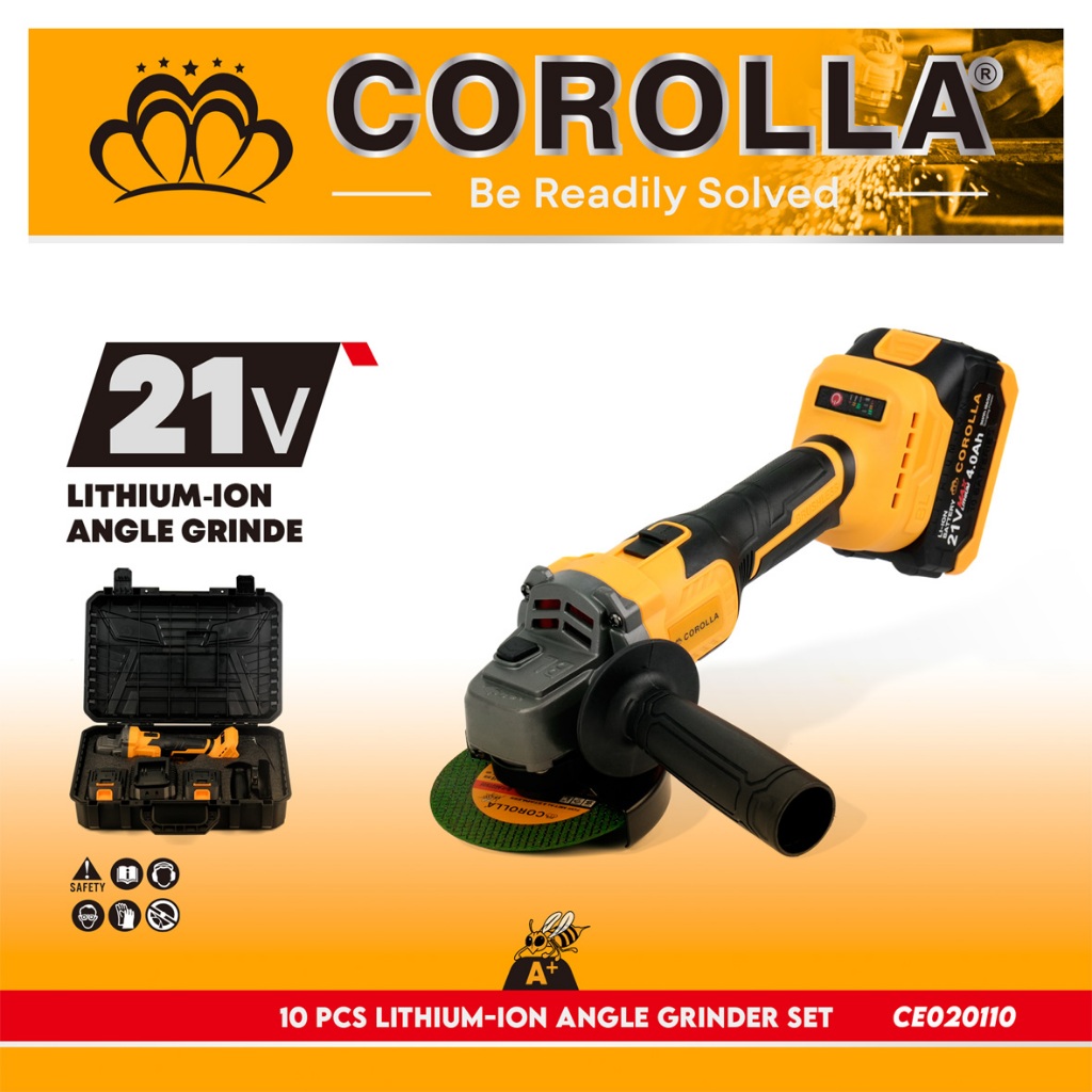 Gerinda Baterai Brushless 10 Pcs Lithium-ion Angle Grinder Set 21V CE020110 / Set Gerinda 21V Baterai+Charger