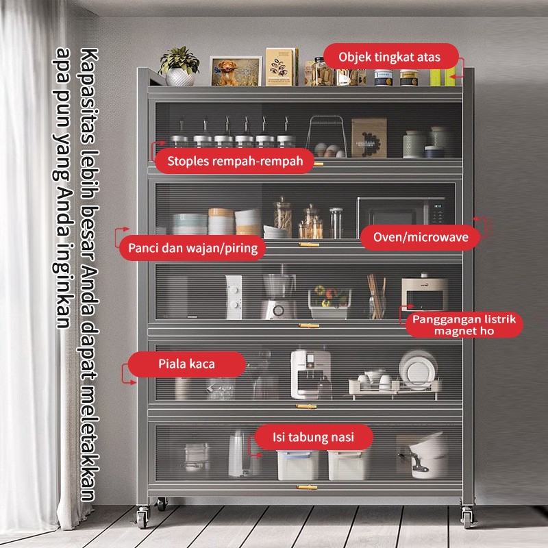 LEMARI DAPUR LEMARI PIRING RAK DAPUR SERBAGUNA MINIMALIS KABINET PENYIMPANAN RAK OVEN MICROWAVE LAN