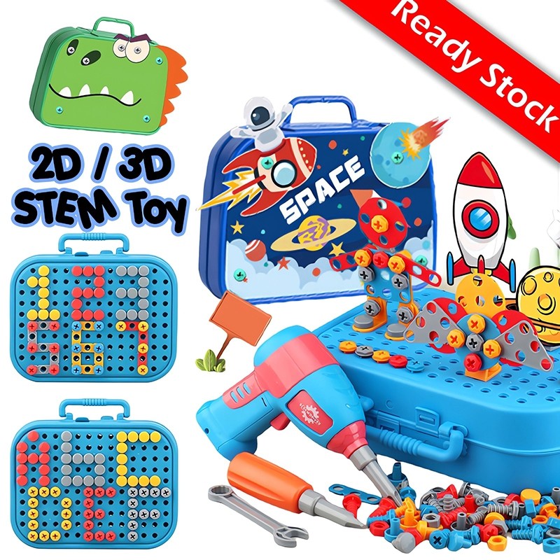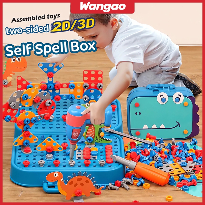 WANGAO Mainan DIY Dinosaurus 3D Bor Listrik Mainan Anak Perbaikan Mainan Bor Anak 3 Tahun Laki Laki