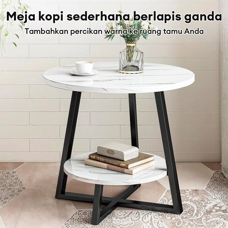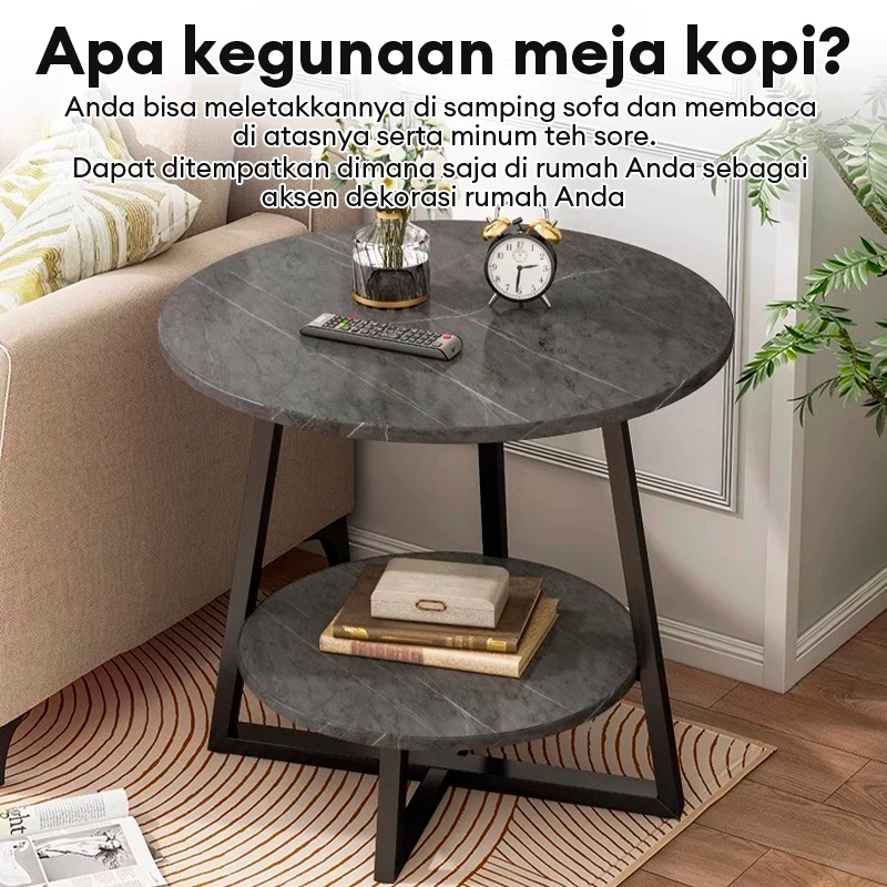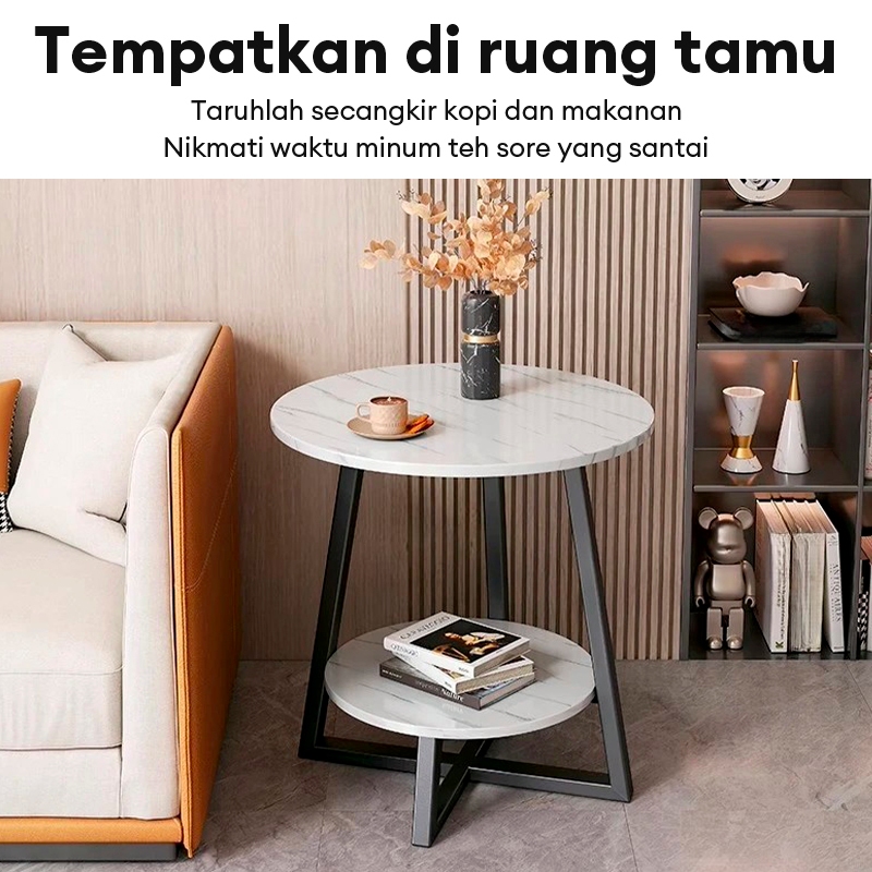 MEJA RUANG TAMU MARMER MEJA KOPI BESI MEJA BULAT 2 SUSUN MEJA MINIMALIS TAMU MEJA POJOK BUNGA