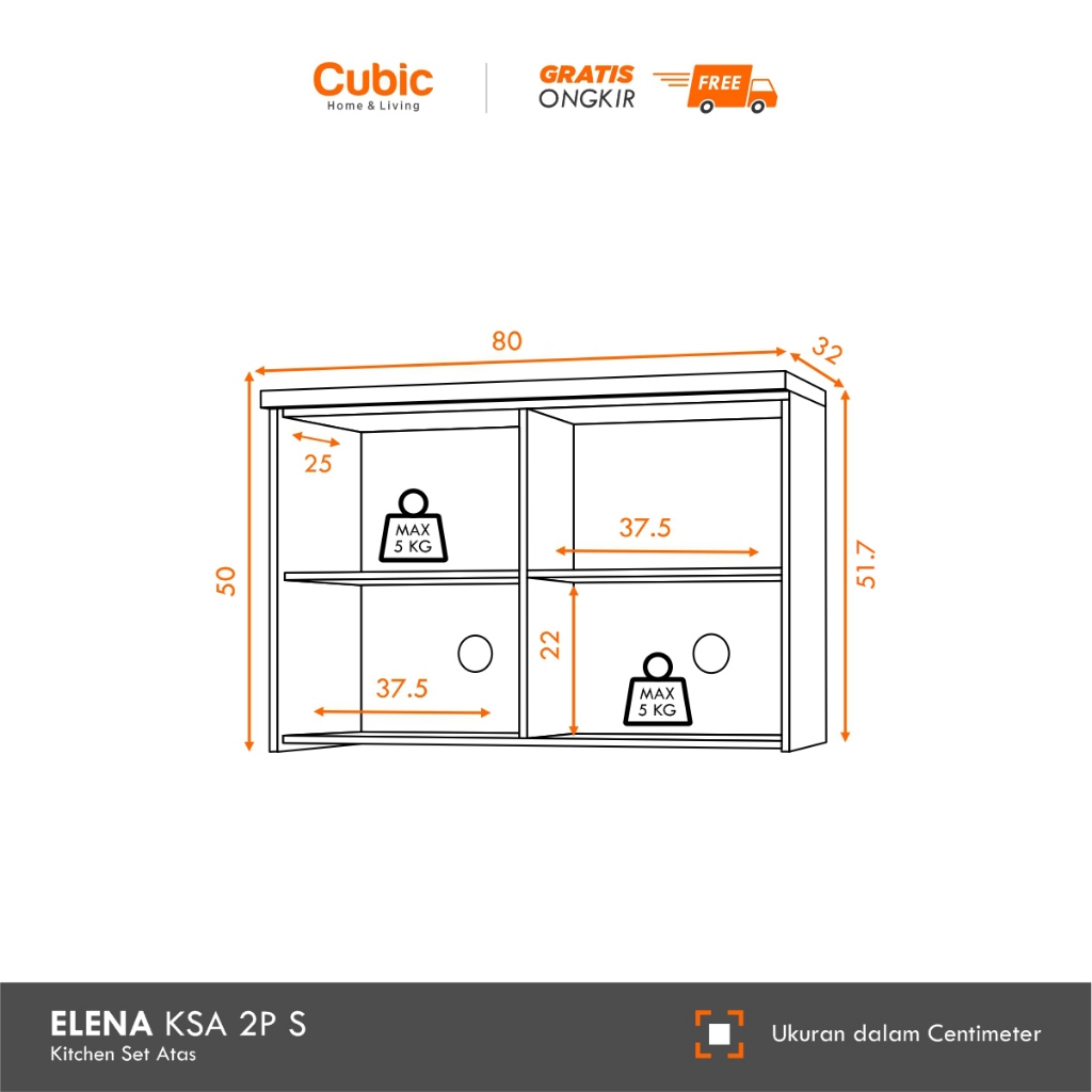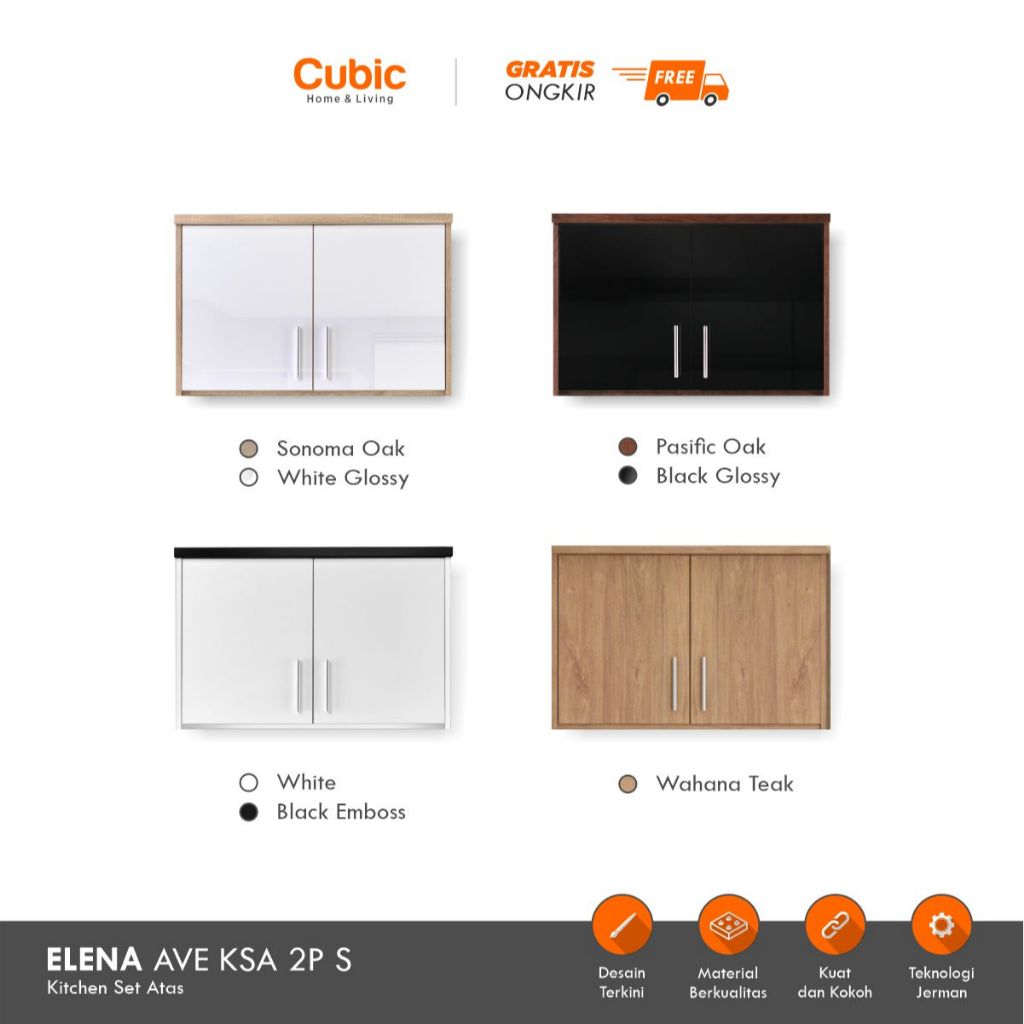 CUBIC KITCHEN SET 2 PINTU MINIMALIS RAK ATAS DAPUR KECIL ELENA AVE KSA 2P S