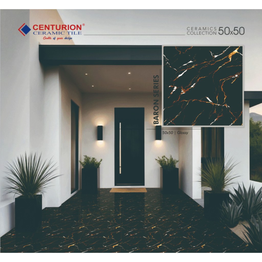 Keramik Lantai 50x50 Hitam Marmer Urat Baron Black