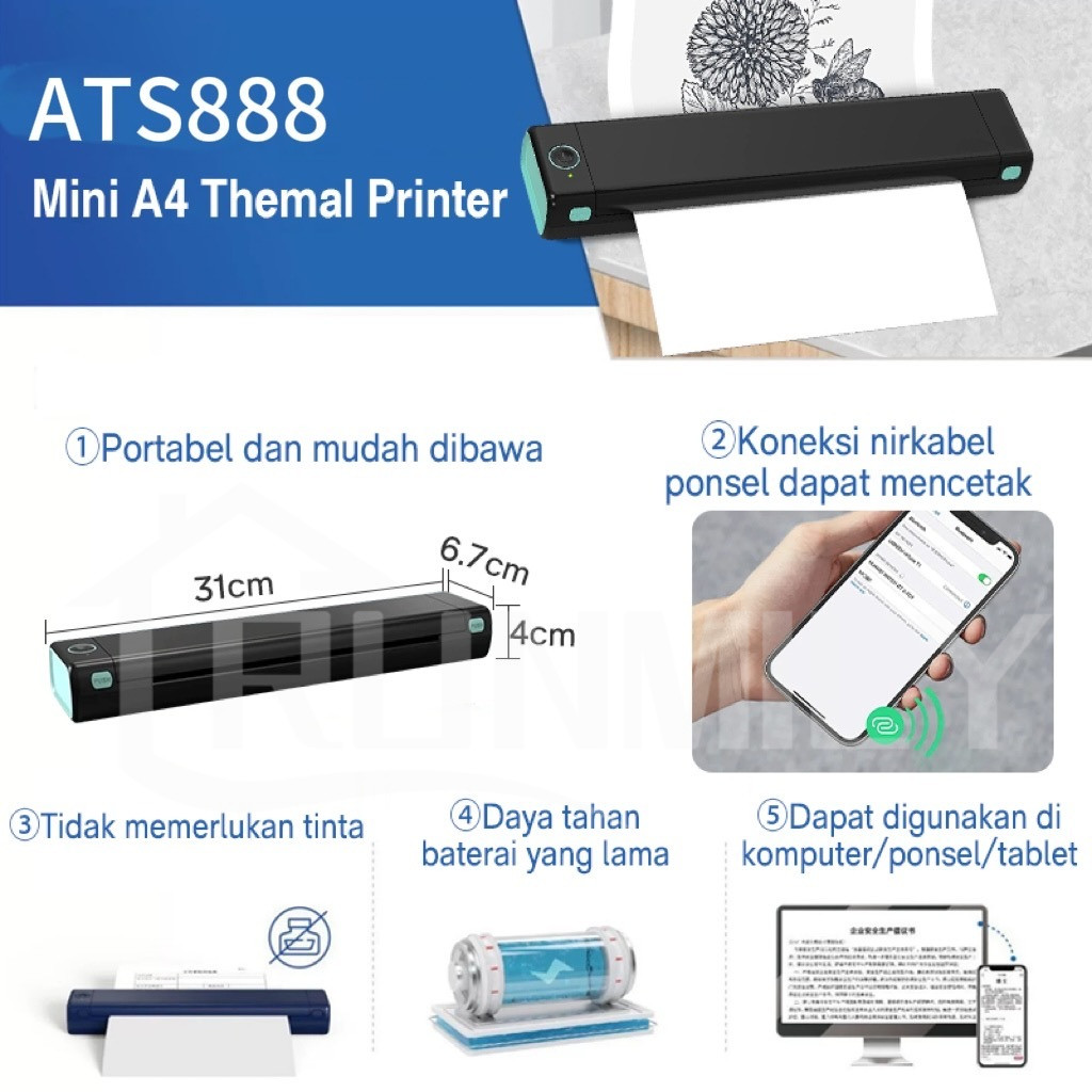 Printer Thermal Portabel Printer Wireless Bluetooth Inkless Printer Mesin Printer Thermal Transfer Printer Stencil Tatto