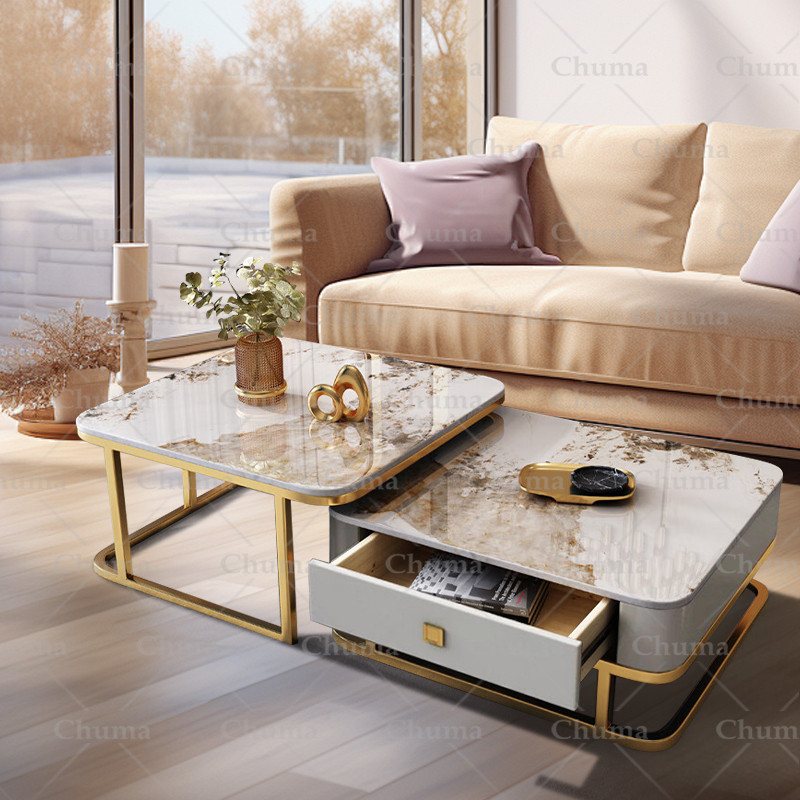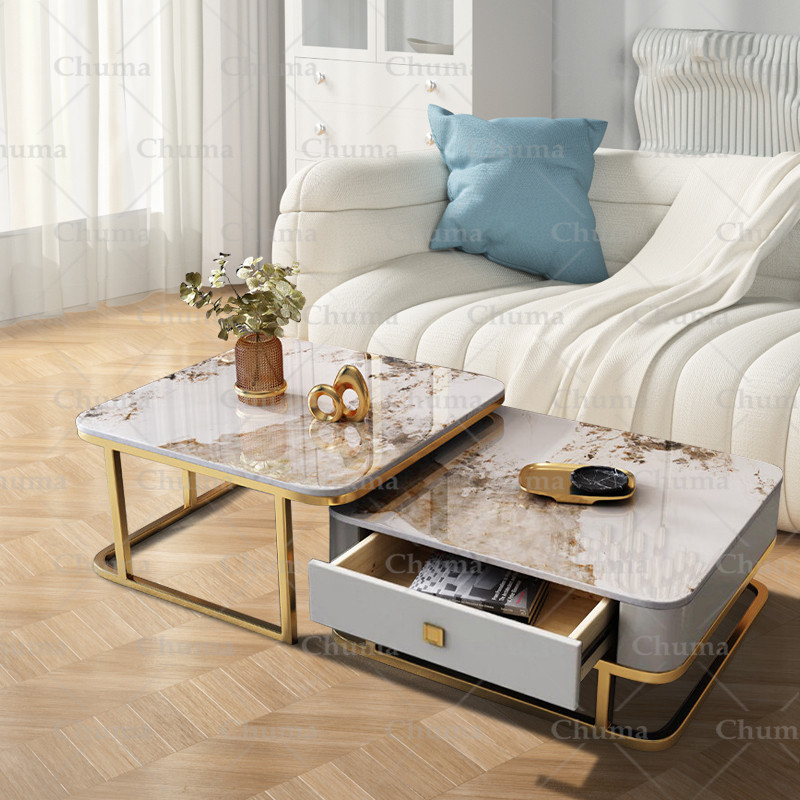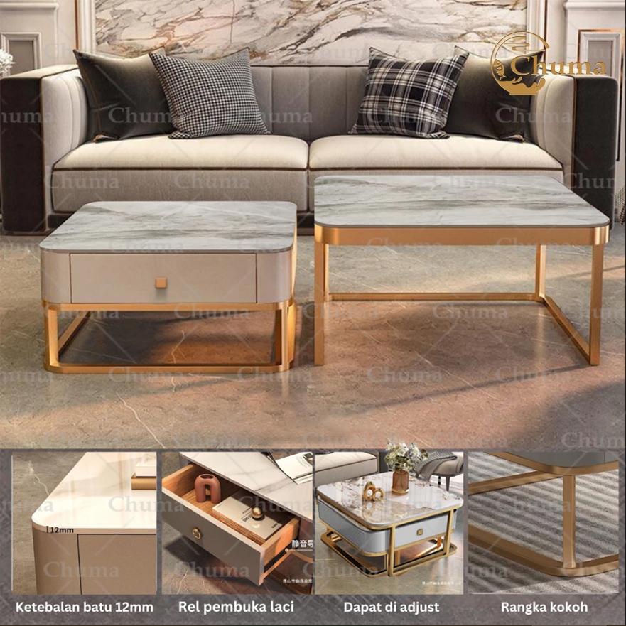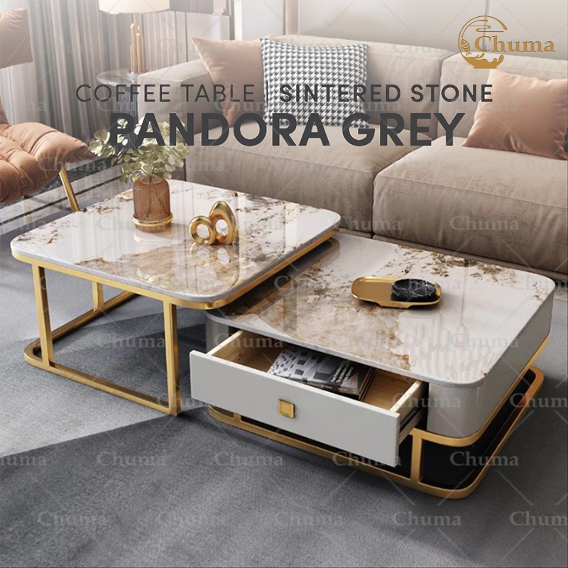 2IN1 MEJA RUANG TAMU PANDORA/GREY KOMBINASI GRATIS PERSEGI 2 TINGKAT MARMER BATU TULIS MEJA TAMU AESTHETICGAYA DESAINERIDEAL