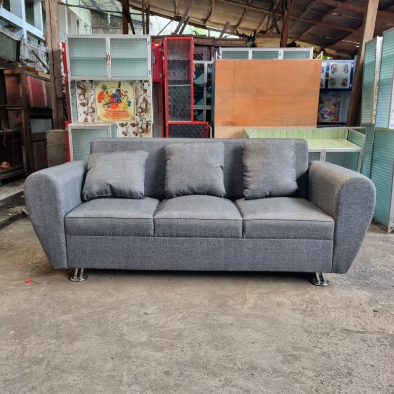 SOFA RETRO MINIMALIS 3 SEATER KAKI STAINLESS