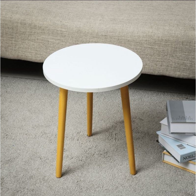 MEJA MINIMALIS MODERN RUANG TAMU BULAT SUDUT SAMPING KAMAR TIDUR DEKORASI HIAS MODERN PUTIH