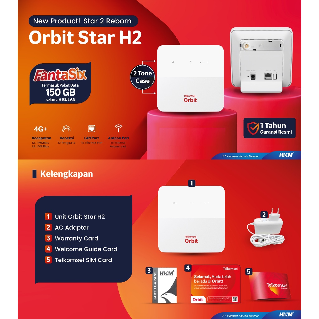 Telkomsel Orbit Star H2 Huawei B320 Modem Router WiFi 4G LTE Bonus 150 GB