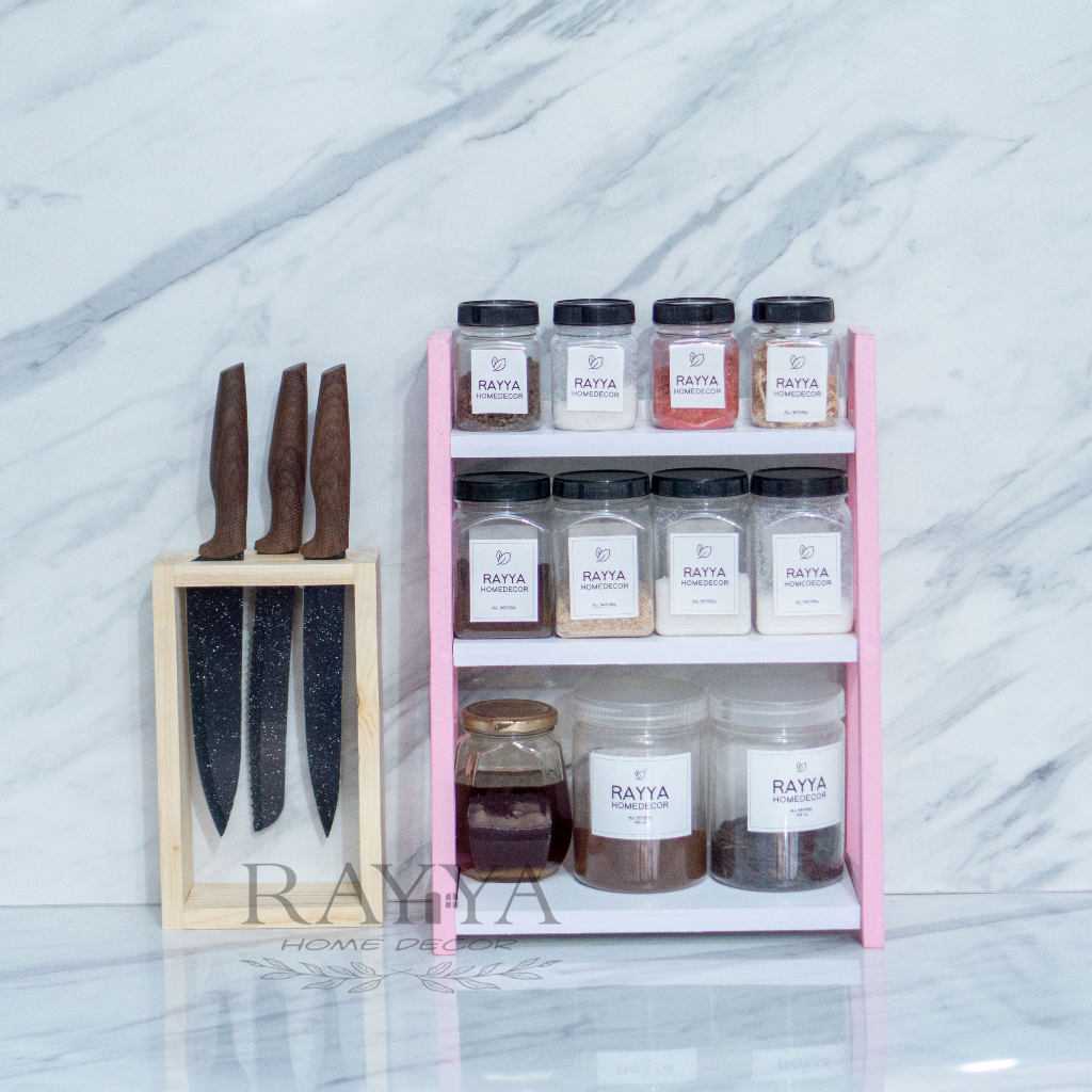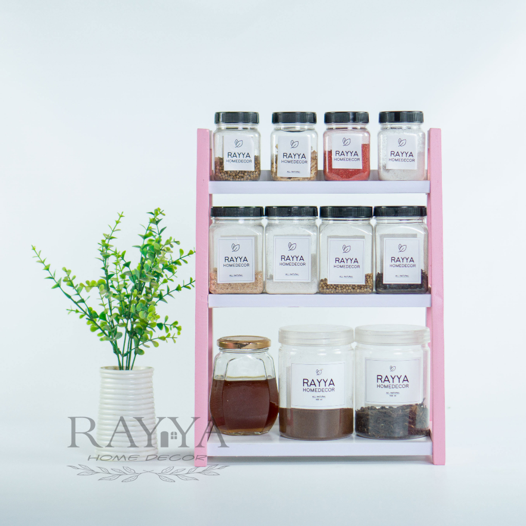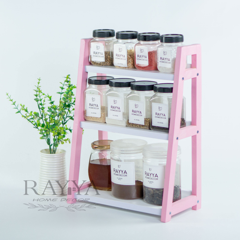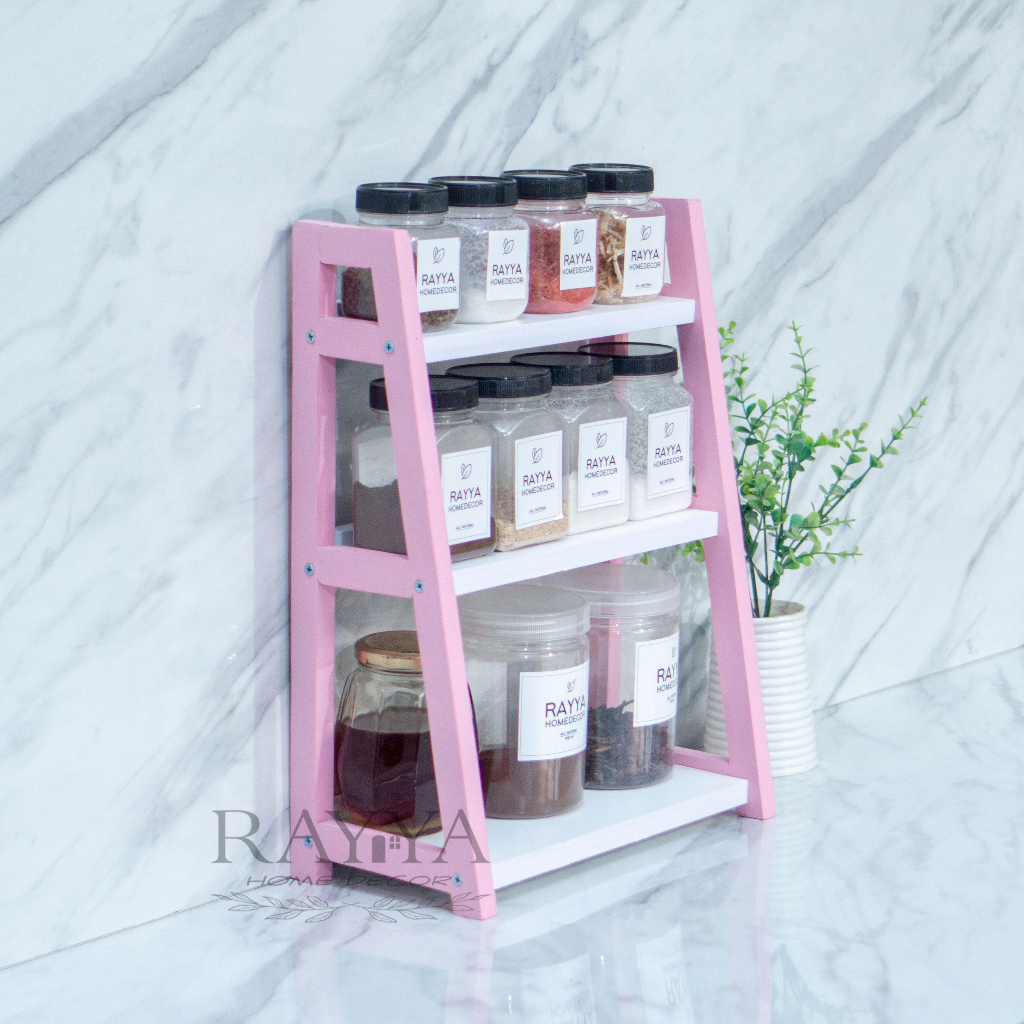 RAK BUMBU DAPUR KAYU SERBGAUNA 3 SUSUN MEDIUM PINK