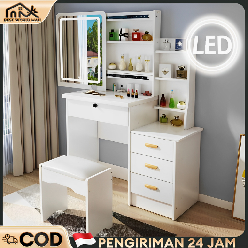 MEJA RIAS AESTHETIC MEJA RIAS DENGAN CERMIN MEJA RIAS LED MEJA RIAS LAMPU MEJA RIAS MINIMALIS MEJA RIAS SET BANGKU MEJA MAKE UP