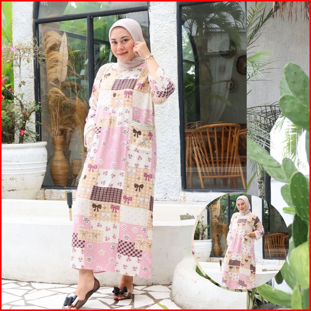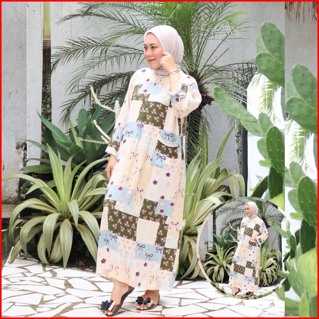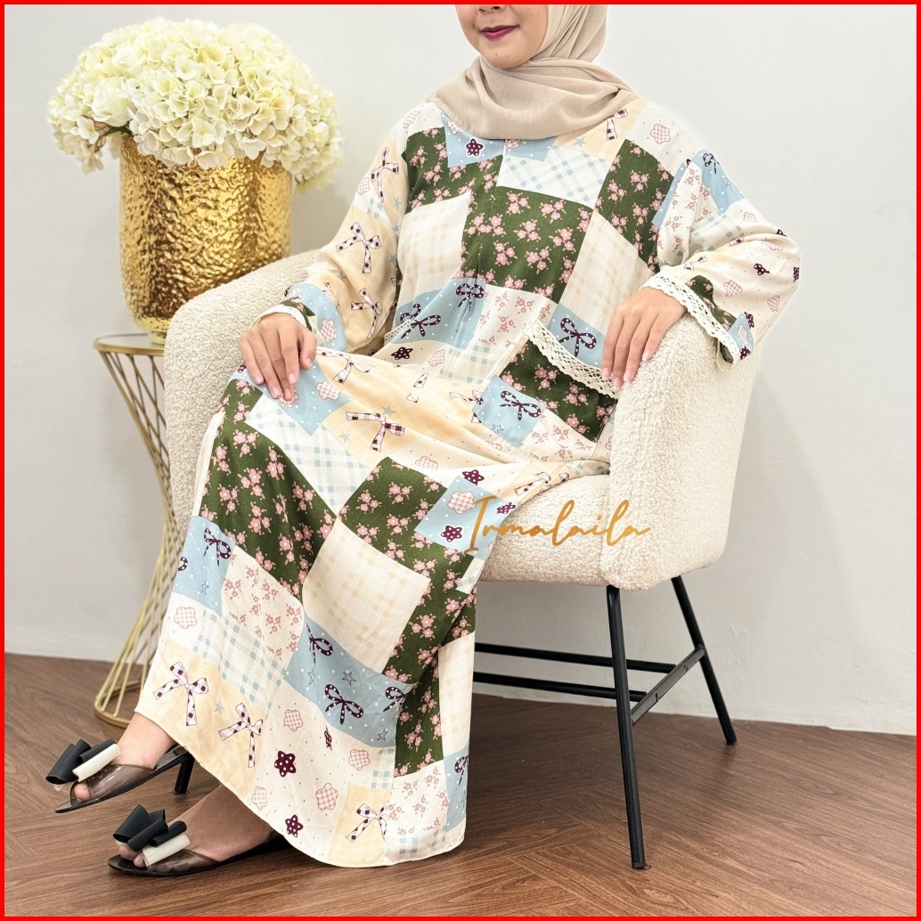 Irmalaila - Daster Kekinian Renda Tangan Panjang 2 Saku Mix Renda Cantik Bahan Rayon Lembut Adem Nyaman Bumil Dan Busui