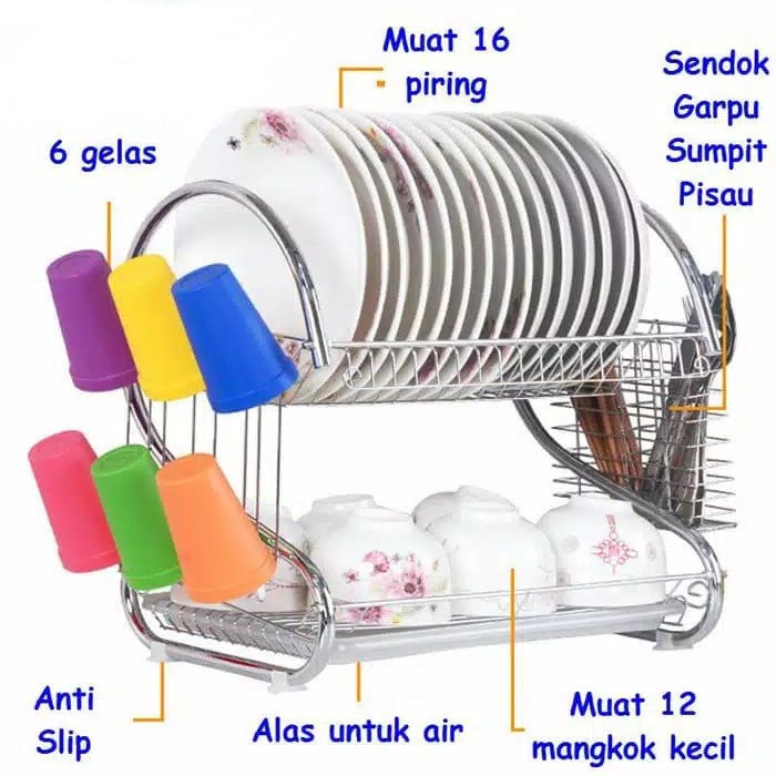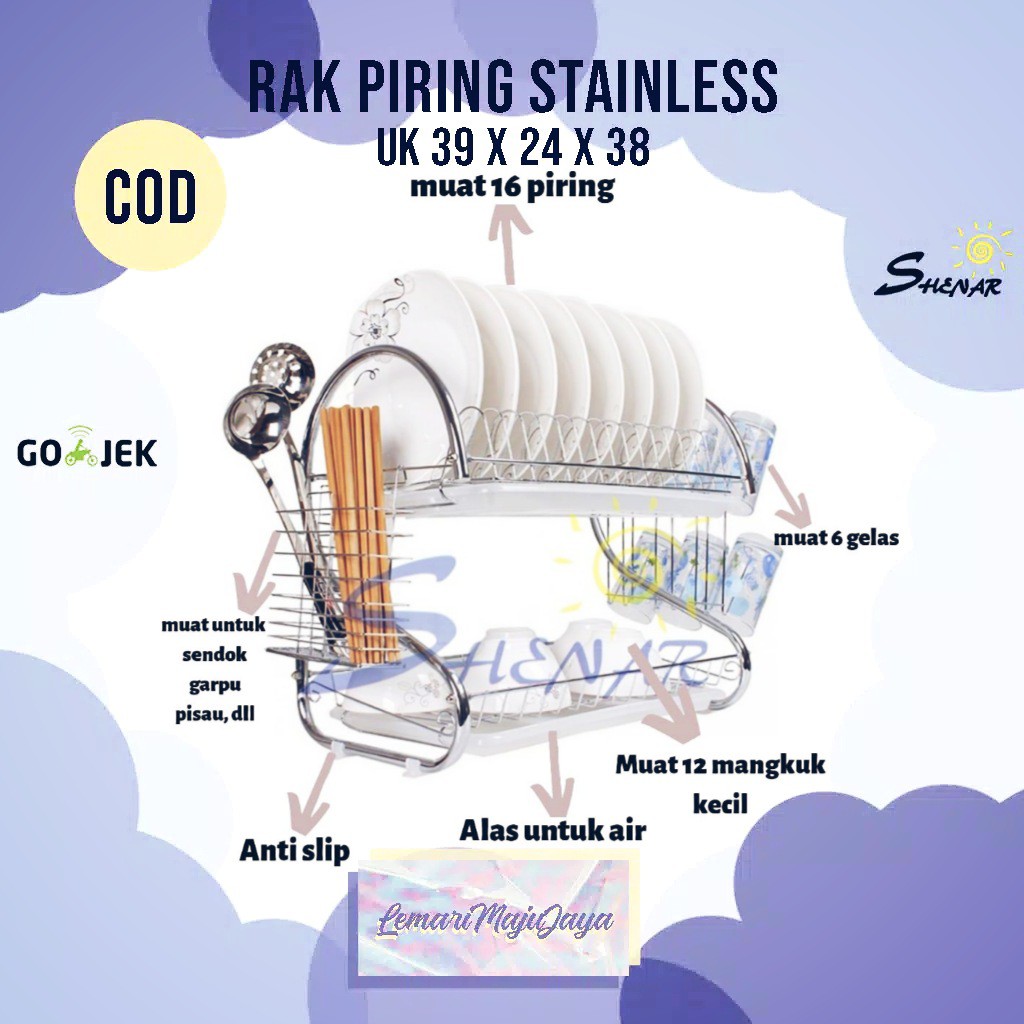 RAK PIRING 2 SUSUN/RAK PIRING STAINLESS/RAK MINIMALIS/PERALATAN DAPUR/RAK SERBAGUNA