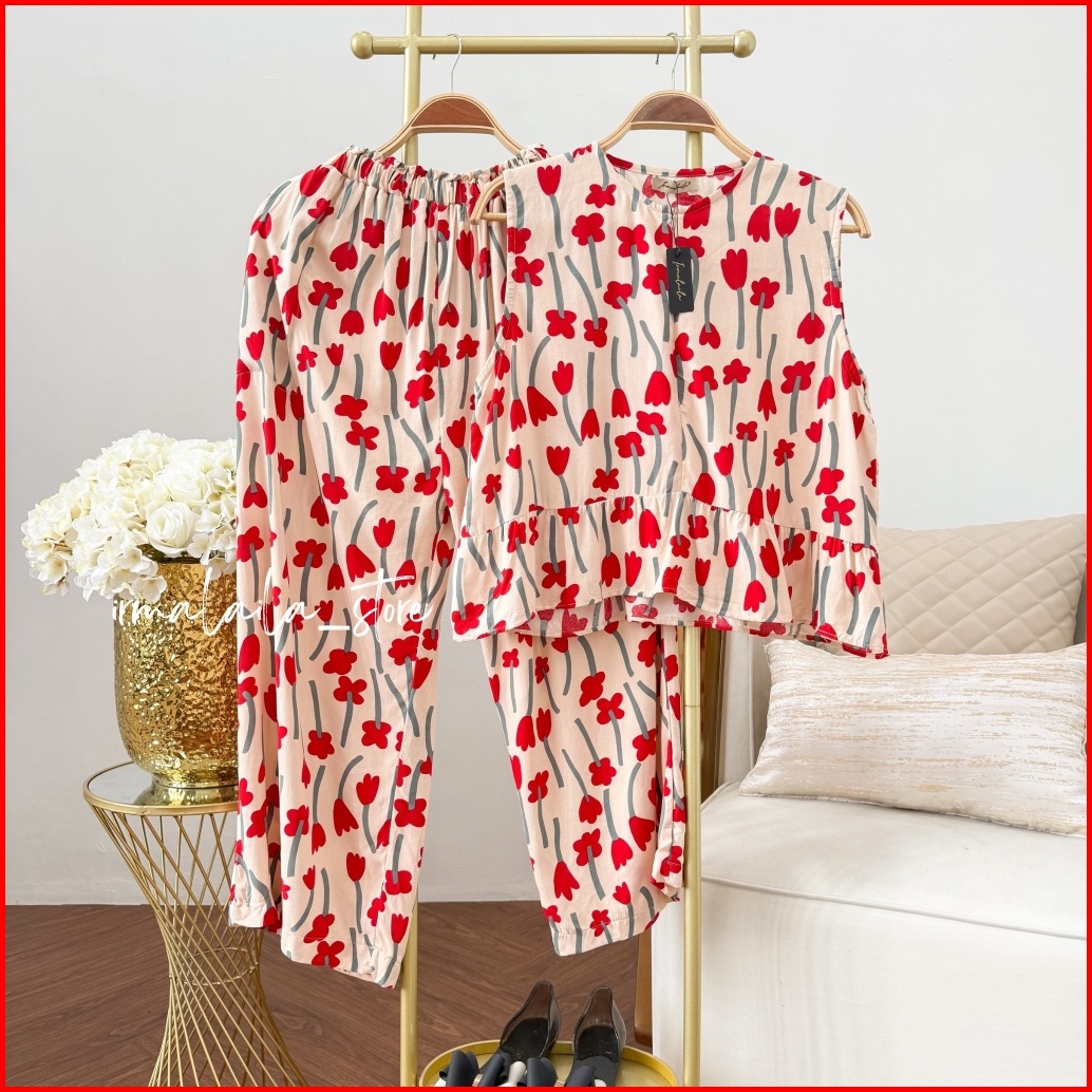 Irmalaila - Amira One Set Kutung Celana Kulot 7 8 Rayon Motif Adem Nyaman Daily Busui Friendly