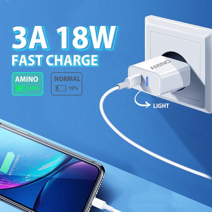 AMINO 3A 18W Fullset Adaptor Fast Charger 4A Type C Kabel /4A Micro USB Kabel / For Samsung Fast Charger / For oopo Fas
